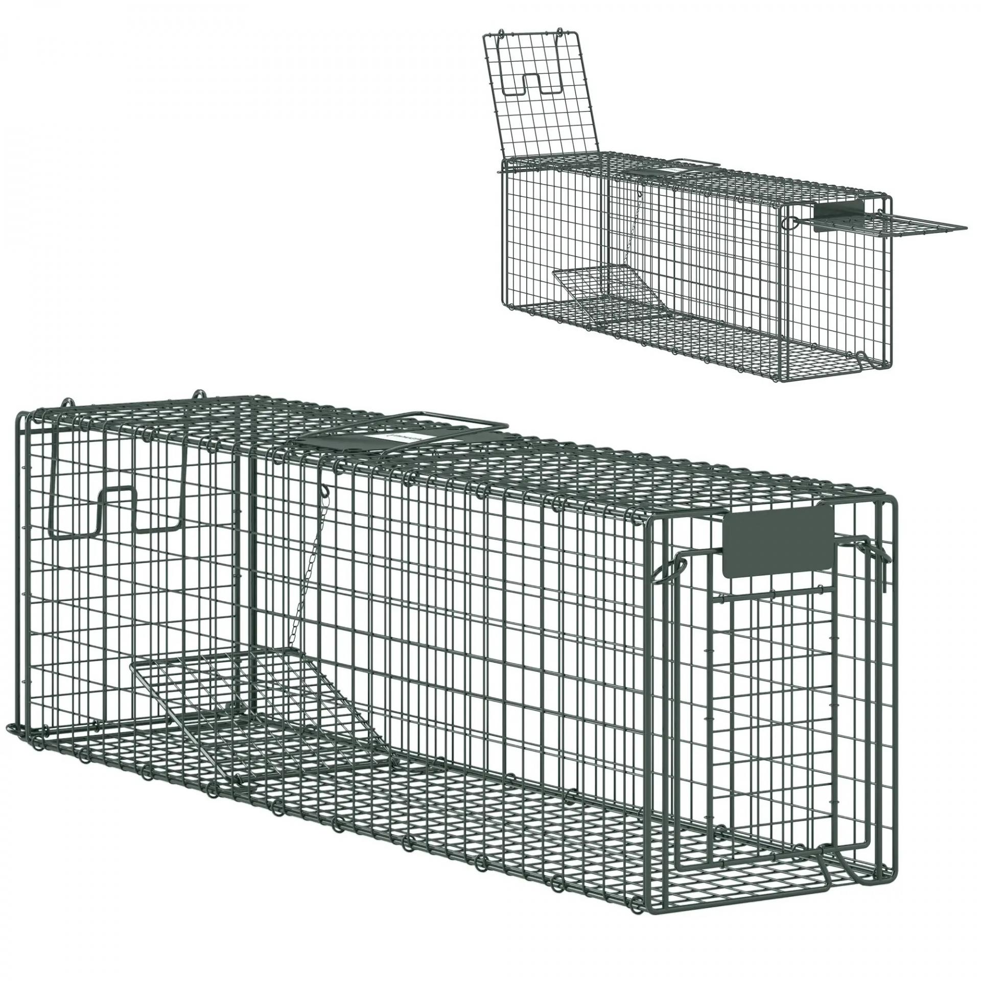 Trampa para Animales Vivos 100x24x30 cm con 2 Puertas y Marco de Acero para Interior y Exterior Verde