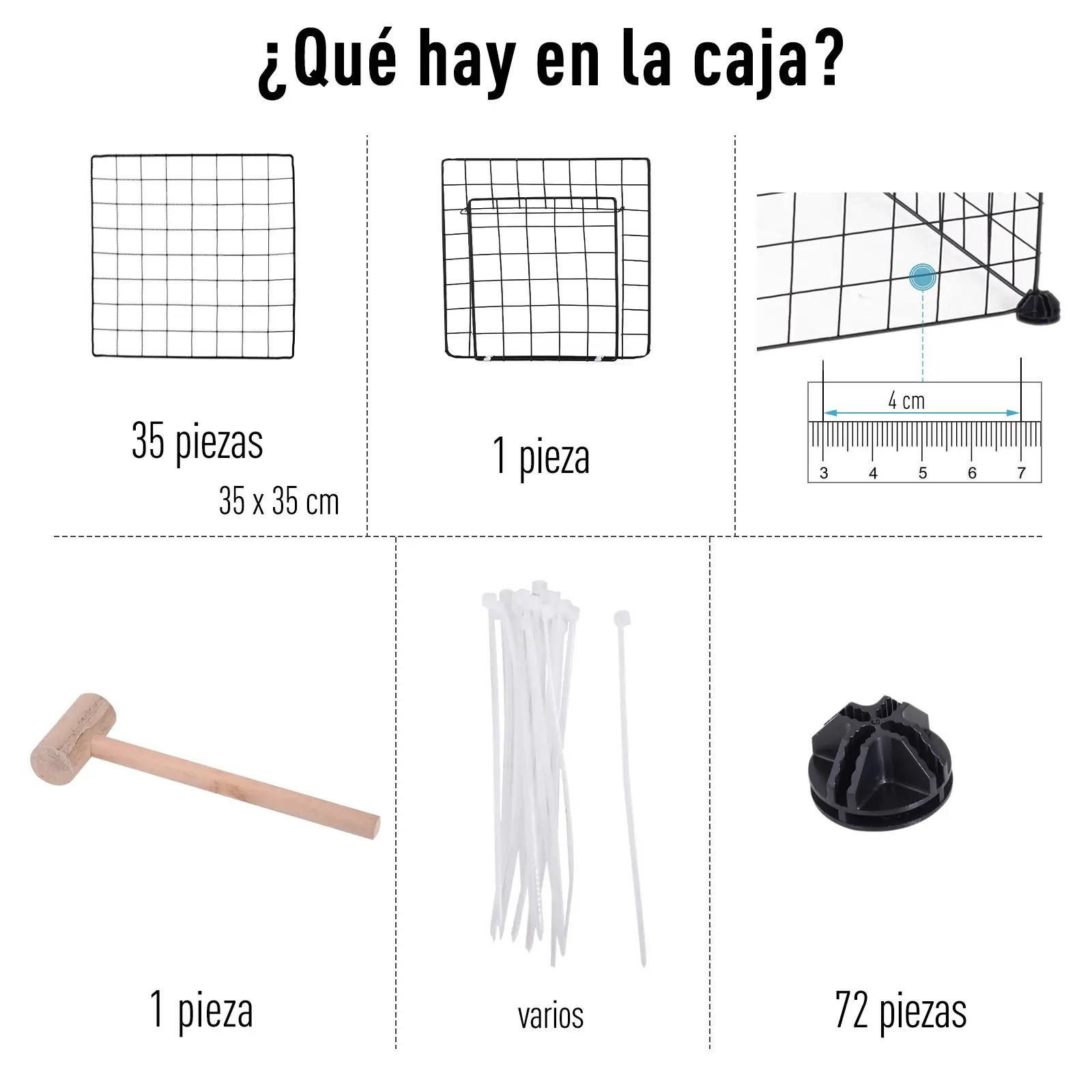 - MEDIDAS TOTALES (forma estándar): 146x73x73 cm (LxANxAL). Medidas de cada panel: 35x35 cm (LxAN). Se requiere montaje. NOTA: Asegúrate de que las chinchillas no mastiquen el plástico