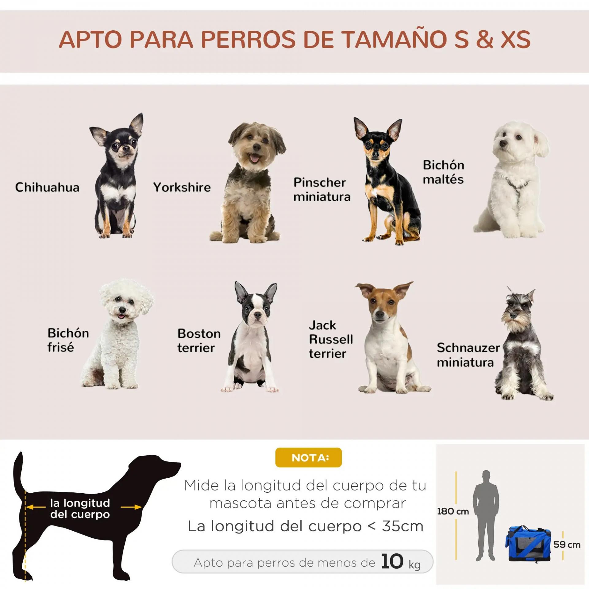 MEDIDAS TOTALES: (sin bolsillo ni bolsa) 60x42x42 cm (LxANxAL). Adecuado para perros miniatura y pequeños con una longitud corporal de <35 cm y un peso de <10 kg.