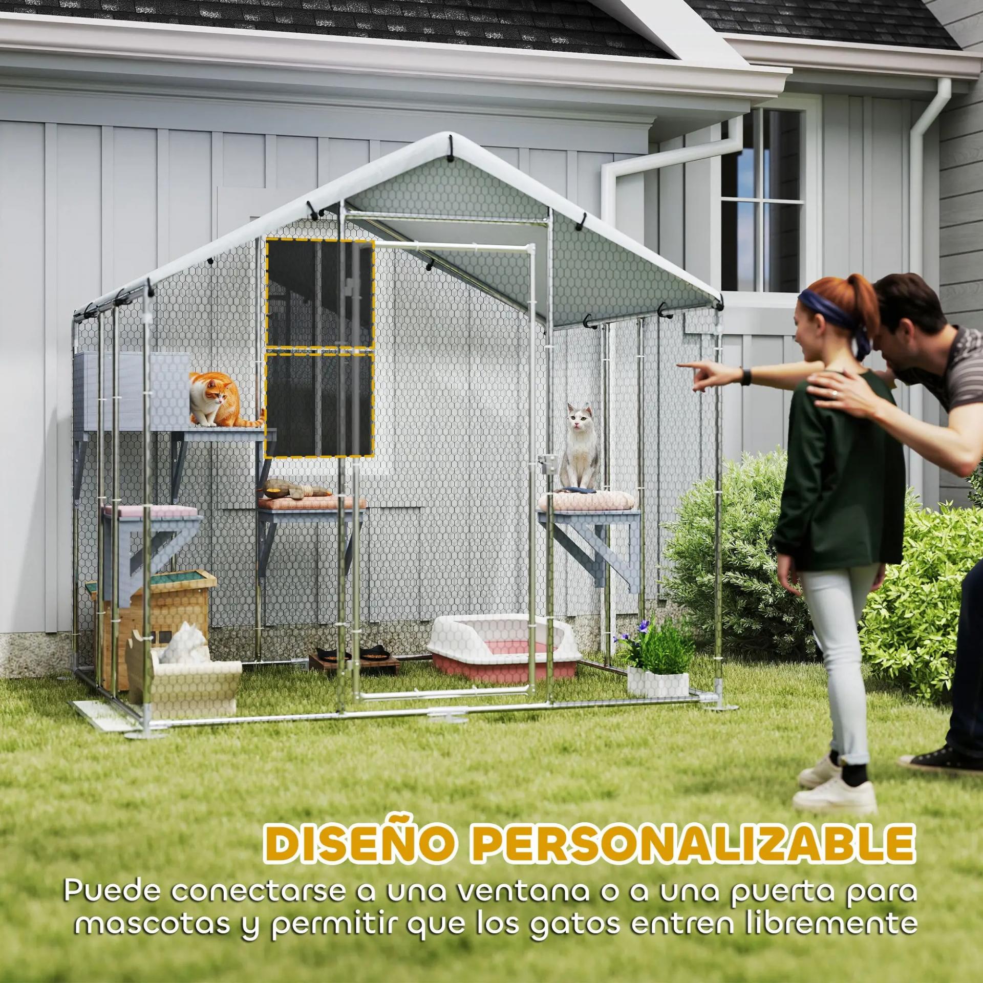 AMPLIO ESPACIO PARA GATOS: Esta jaula para gatos ofrece 3,4 m² de área, ideal para hasta cinco gatos de hasta 10 kg. Además, cuenta con suficiente espacio para que puedas entrar y relajarte junto a tus mascotas