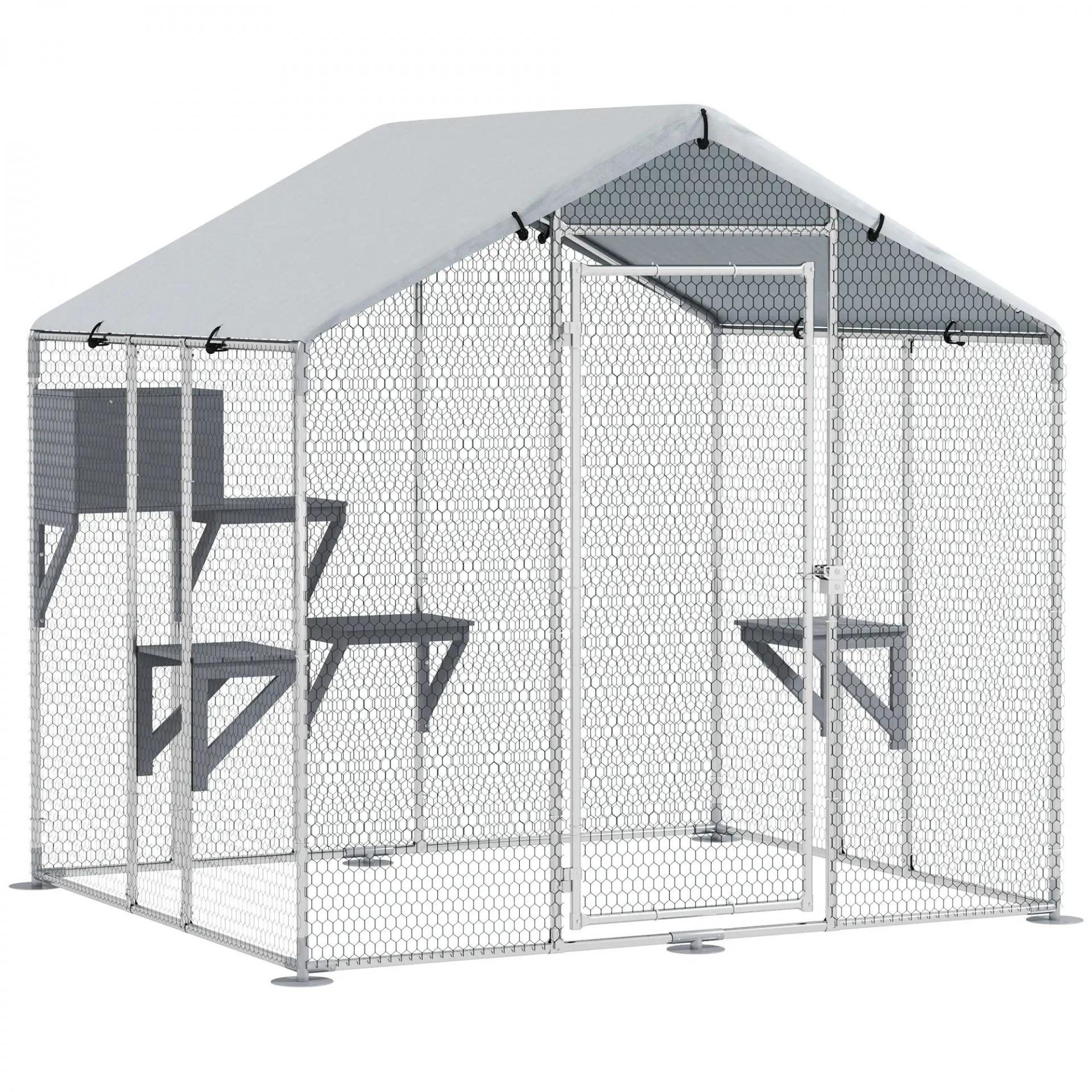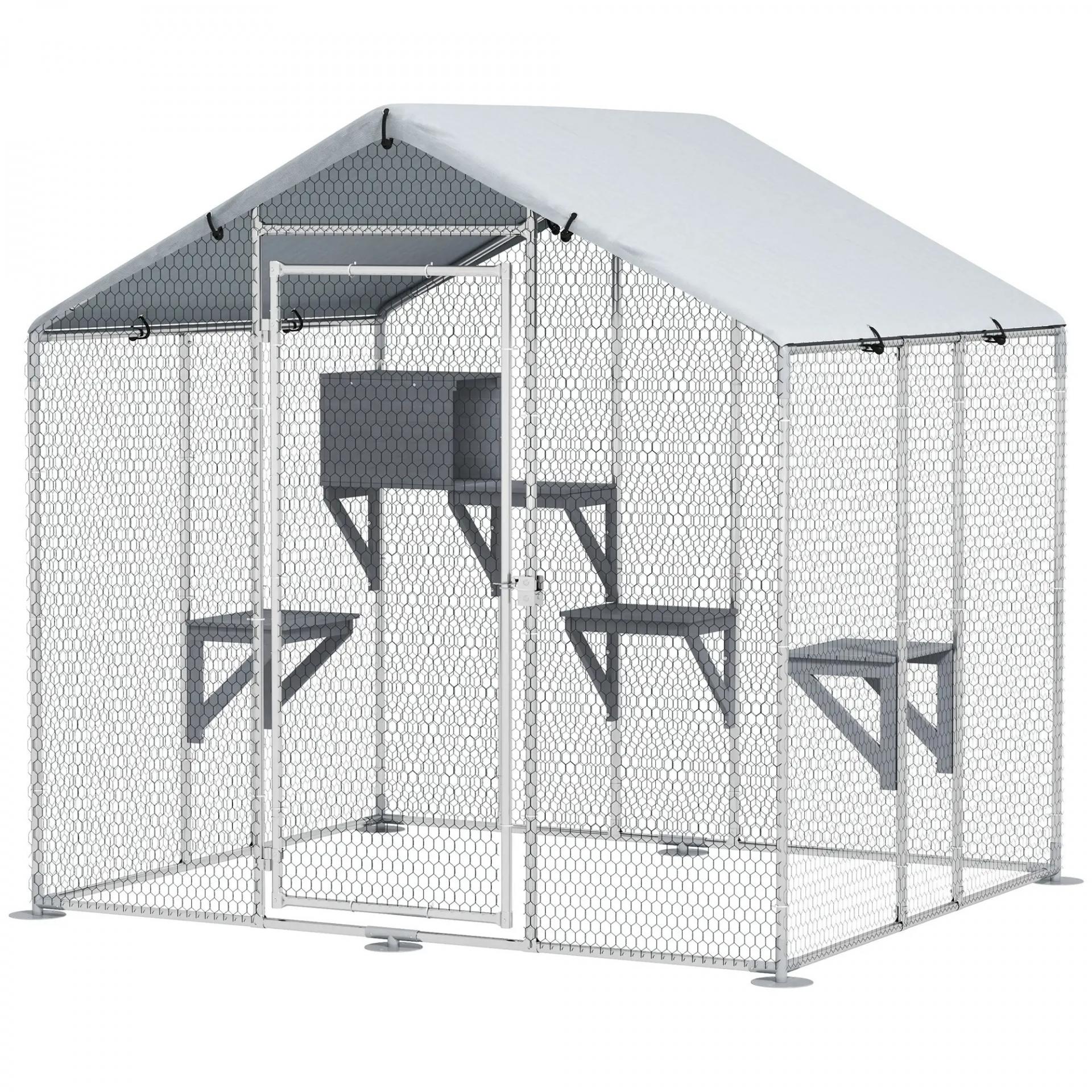 Refugio Exterior Grande para Gatos Jaula de Acero Galvanizado con Techo Impermeable para 5 Gatos 200x170x195 cm Plateado