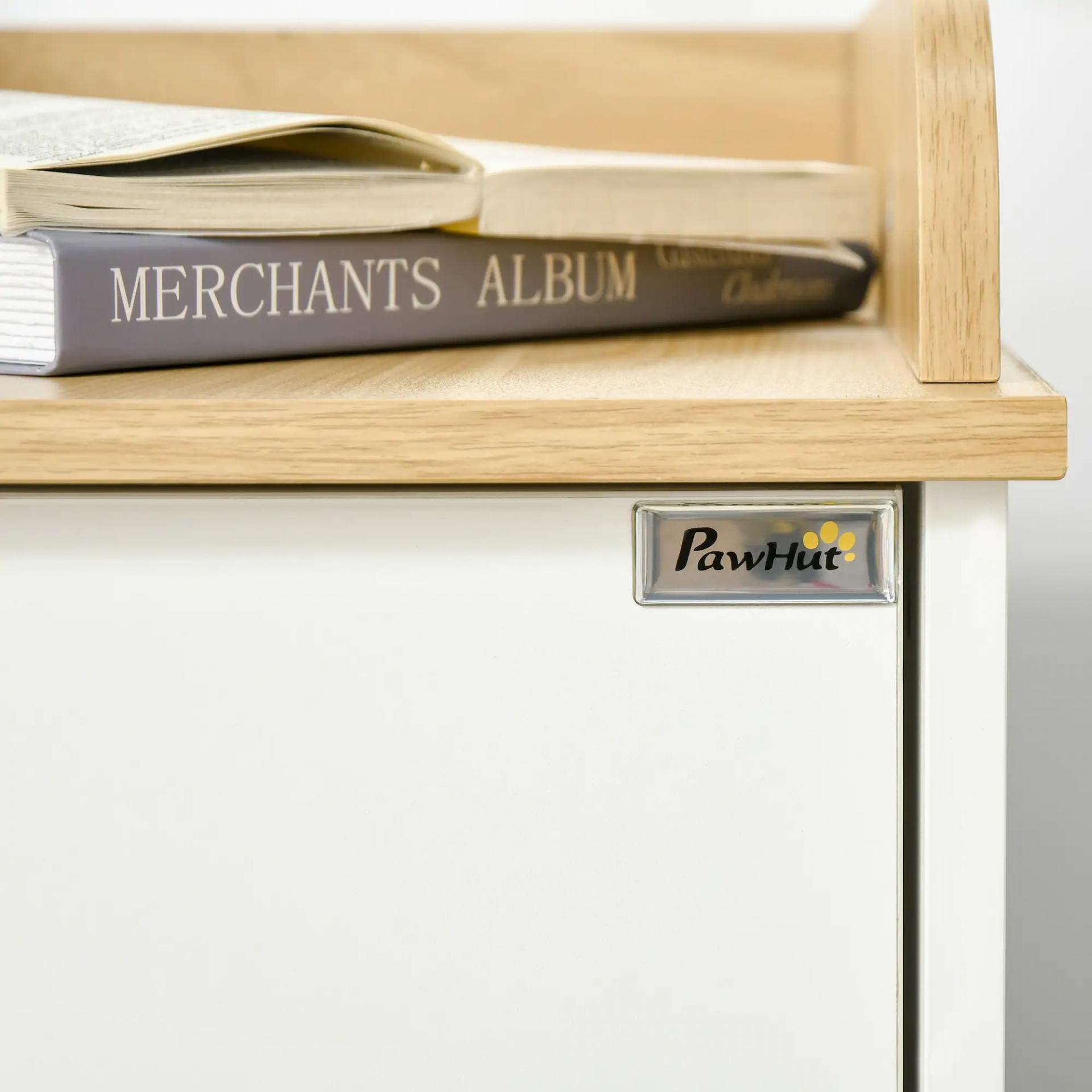 Casa para Gatos de Madera Mueble Arenero para Gatos 2 en 1 con Estante de Almacenaje Doble Puerta y Orificio de Entrada Lateral 75x53x67 cm Blanco y Roble