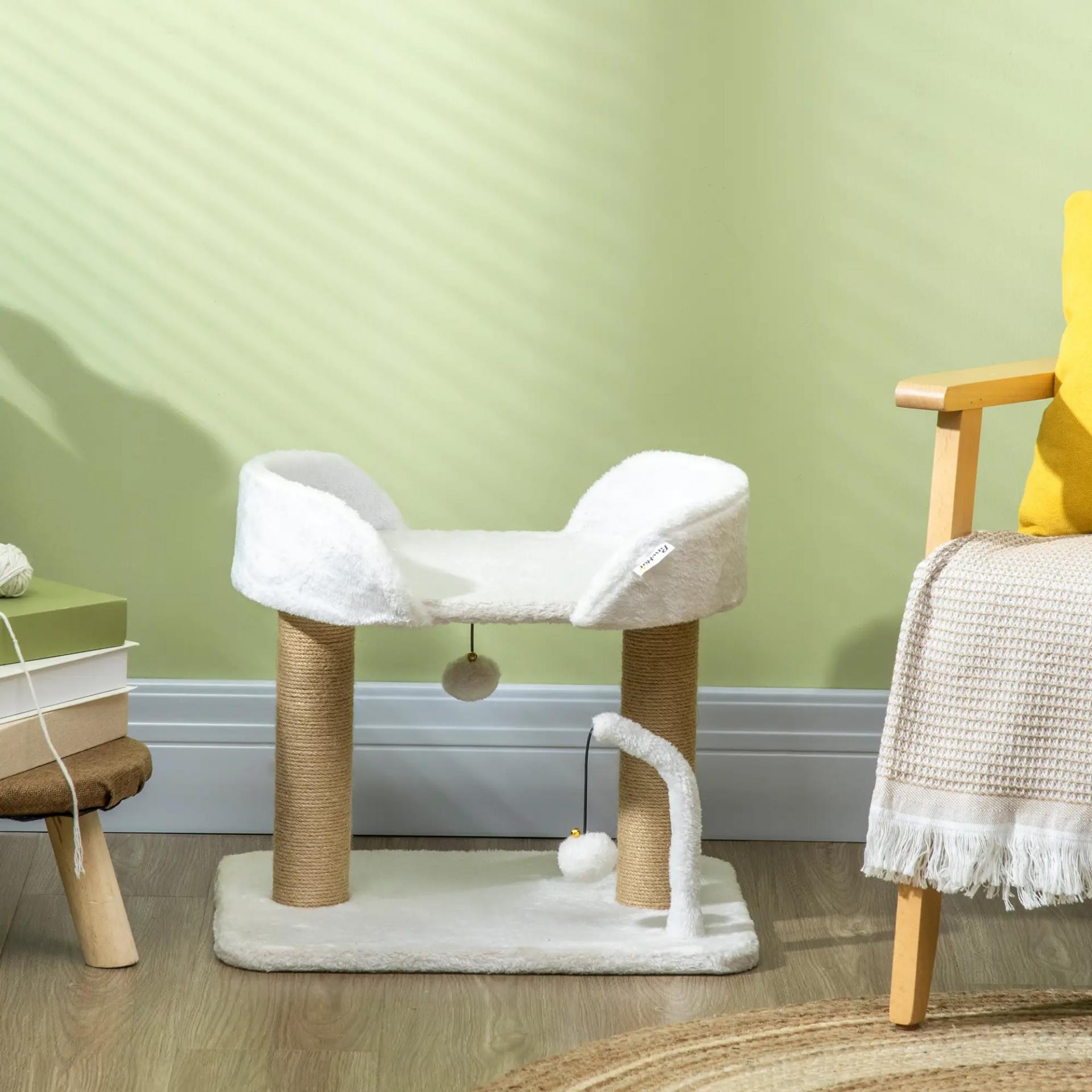 Árbol Rascador para Gatos Pequeños Altura 42 cm con Nido Bolas Colgantes y Postes de Sisal 48x38x42 cm Blanco