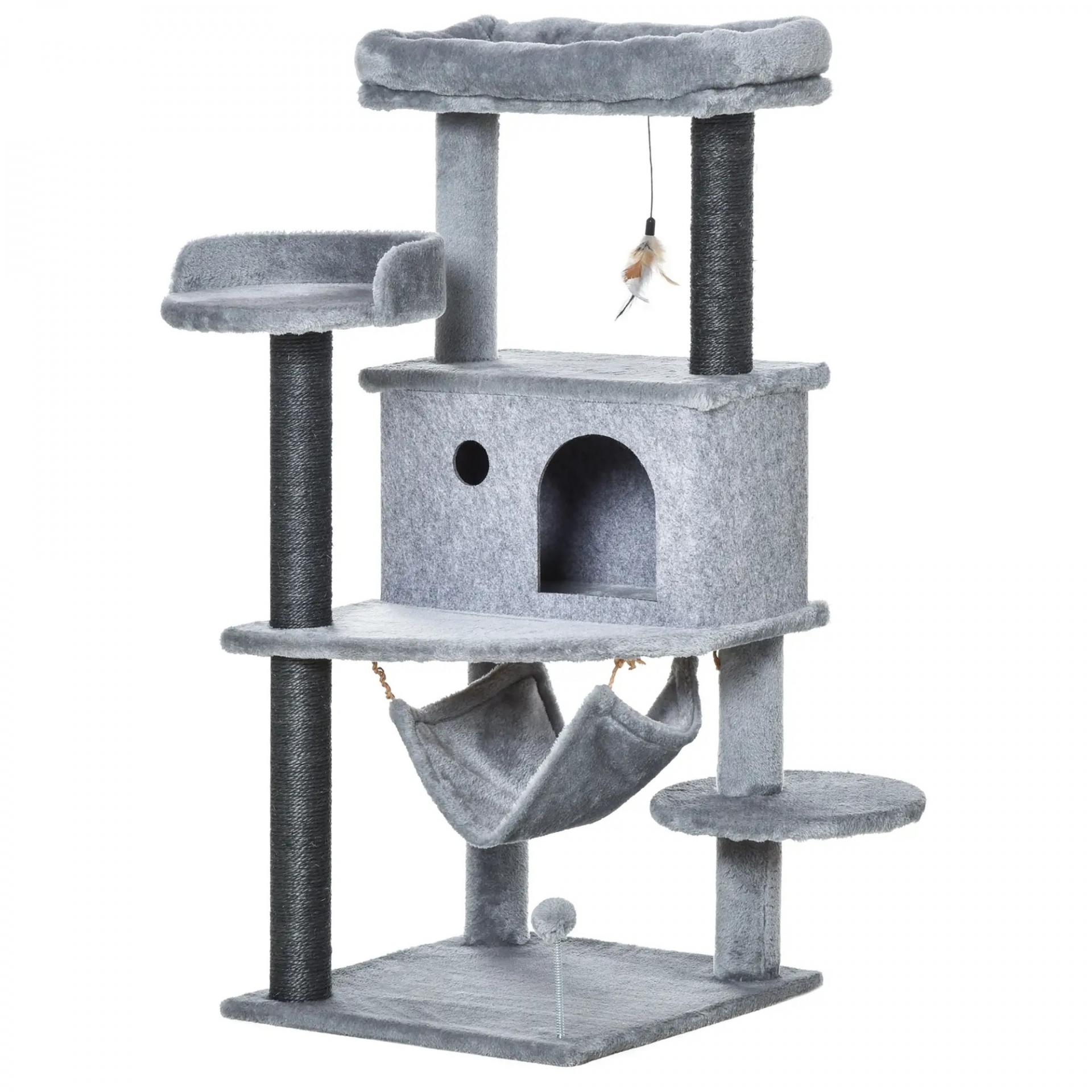 Árbol Rascador para Gatos 48x48x107 cm Torre para Gatos con Cueva de Fieltro Desmontable Hamaca Camas Plataformas Gris