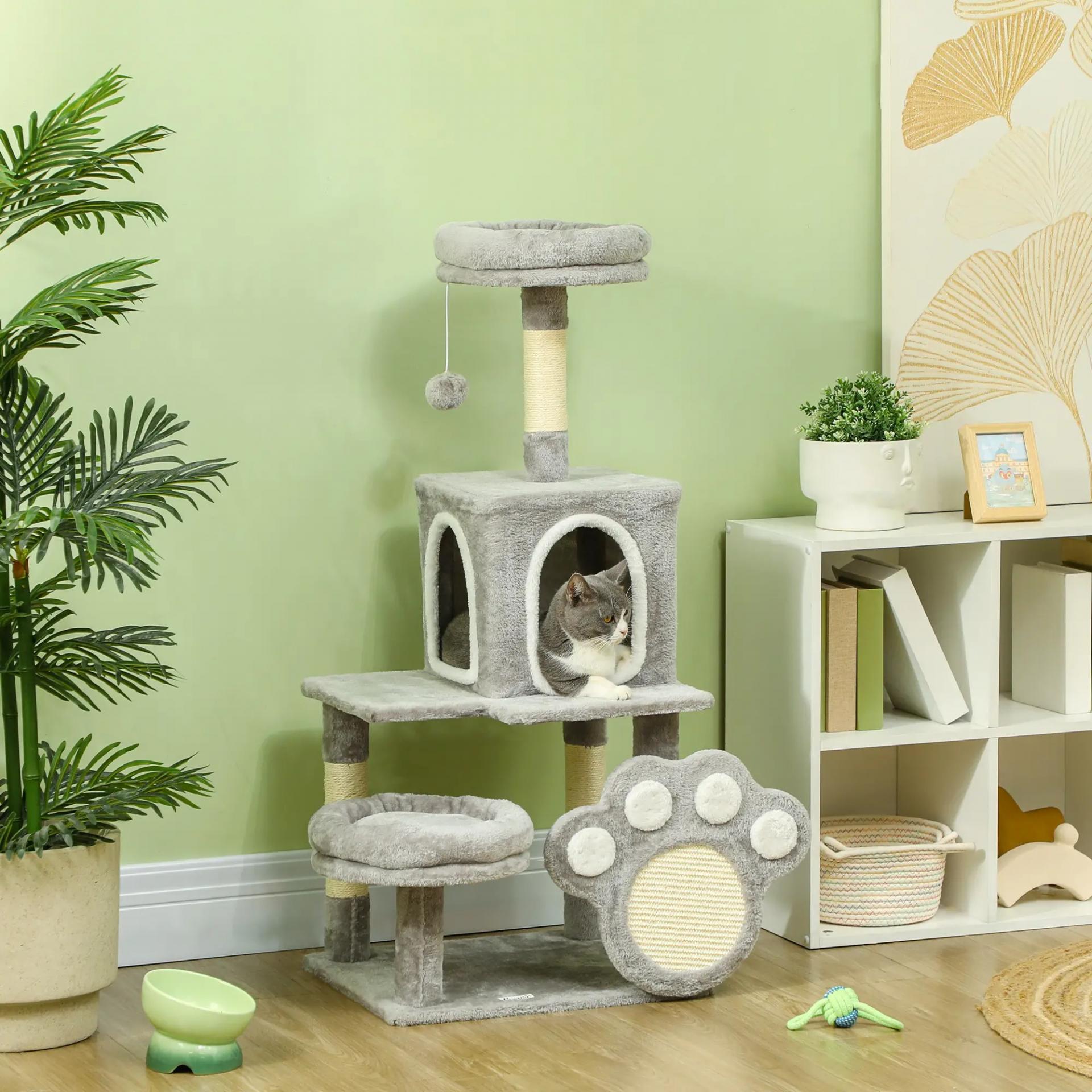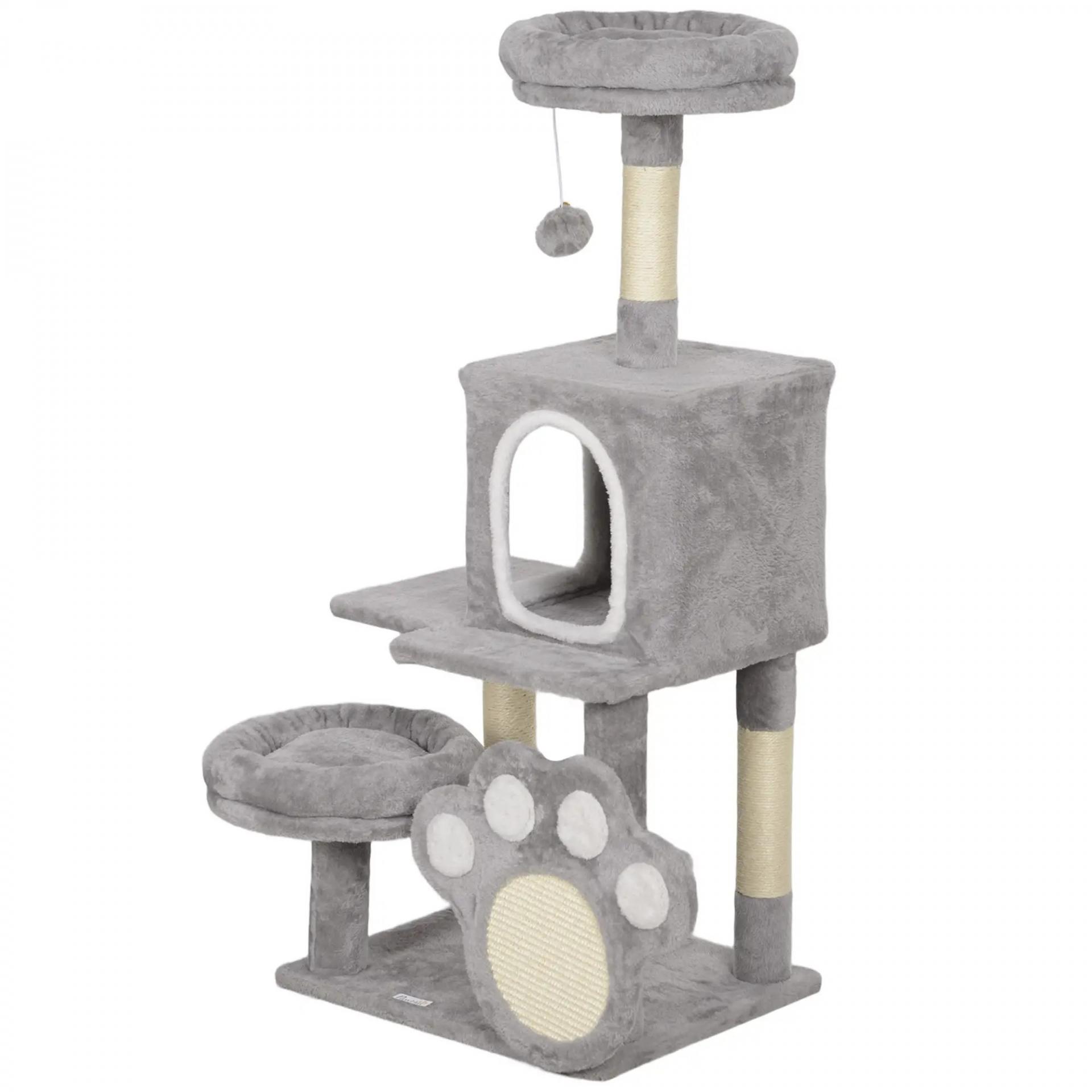 Árbol para gatos 110 cm Torre para Gatos con Nidos Cueva Plataforma Almohadilla de Rascado Bola Colgante Gris Claro