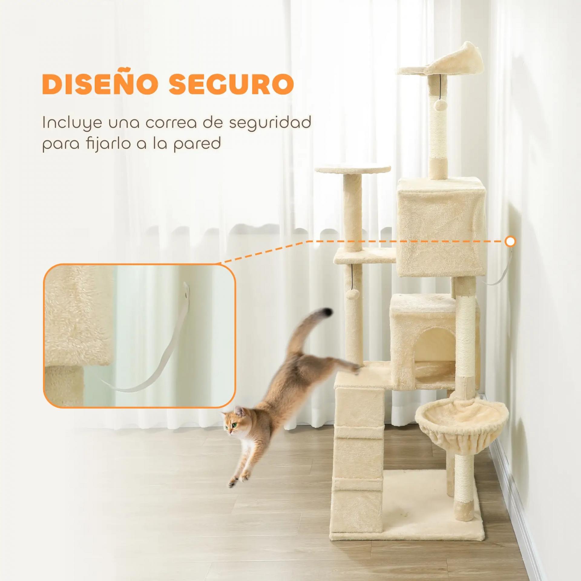 - ESTABLE Y SEGURO: Gracias a su base reforzada y al antivuelco, este árbol rascador para gatos ofrece gran estabilidad, permitiendo que hasta tres gatos puedan jugar y descansar al mismo tiempo con total seguridad