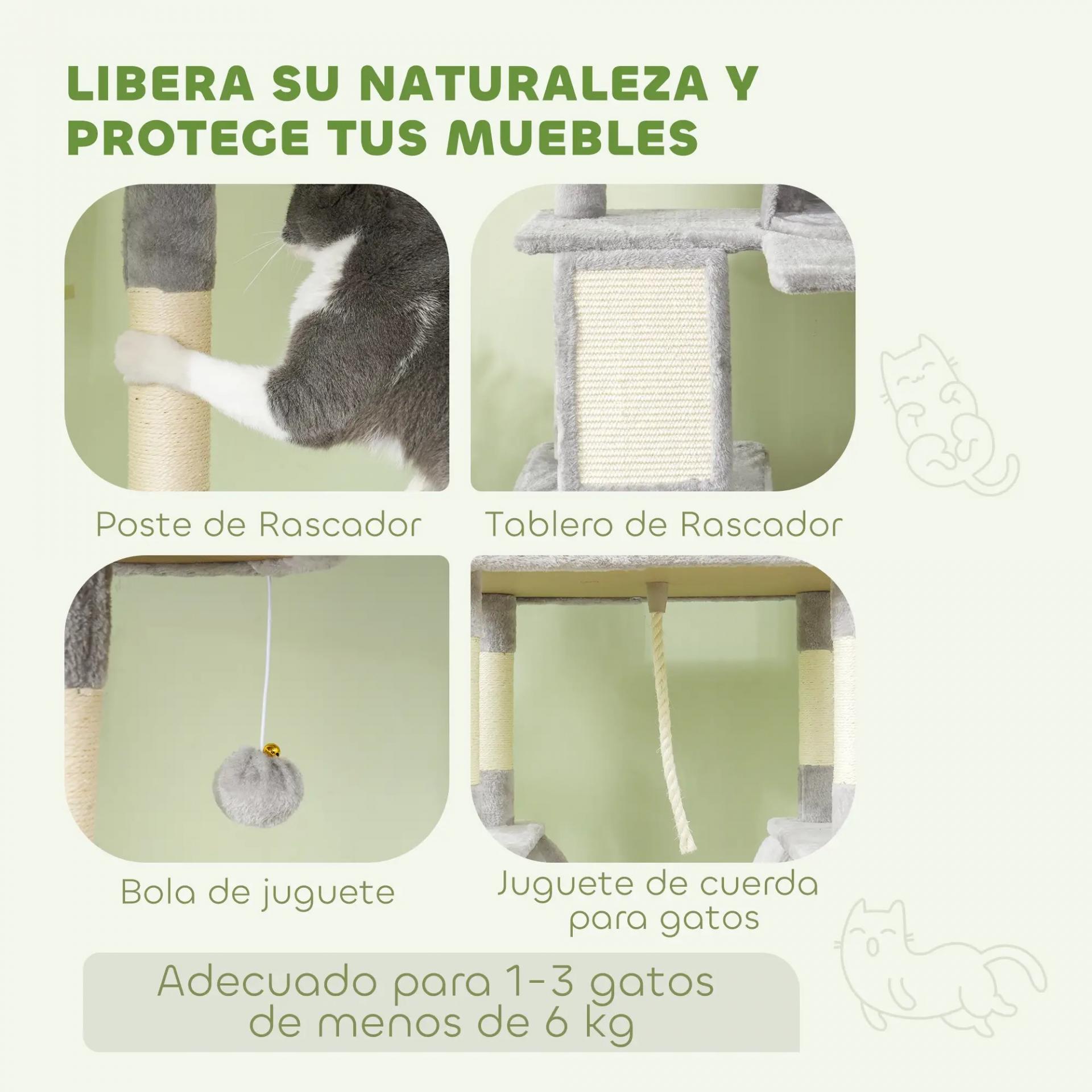 - RASCADO NATURAL: Equipado con postes recubiertos de sisal, una tabla de rascar, dos pelotas de juguete y un juguete de cuerda, este rascador para gatos grandes satisface las necesidades de rascado de tus gatos y protege tus muebles de arañazos