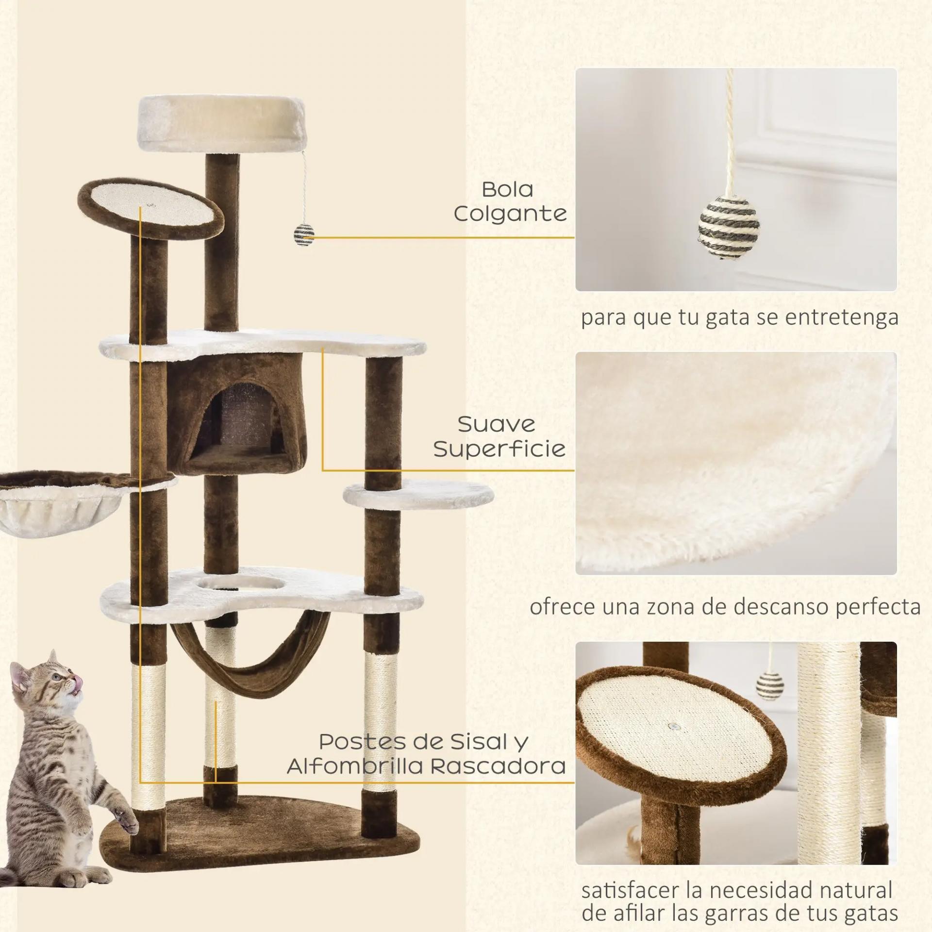 - TAPIZADO DE FELPA SUAVE: Este rascador para gatos destaca por sus amplias plataformas, cama, hamaca y cueva forradas con suave felpa para que tus gatos jueguen y se relajen en un ambiente cómodo y seguro