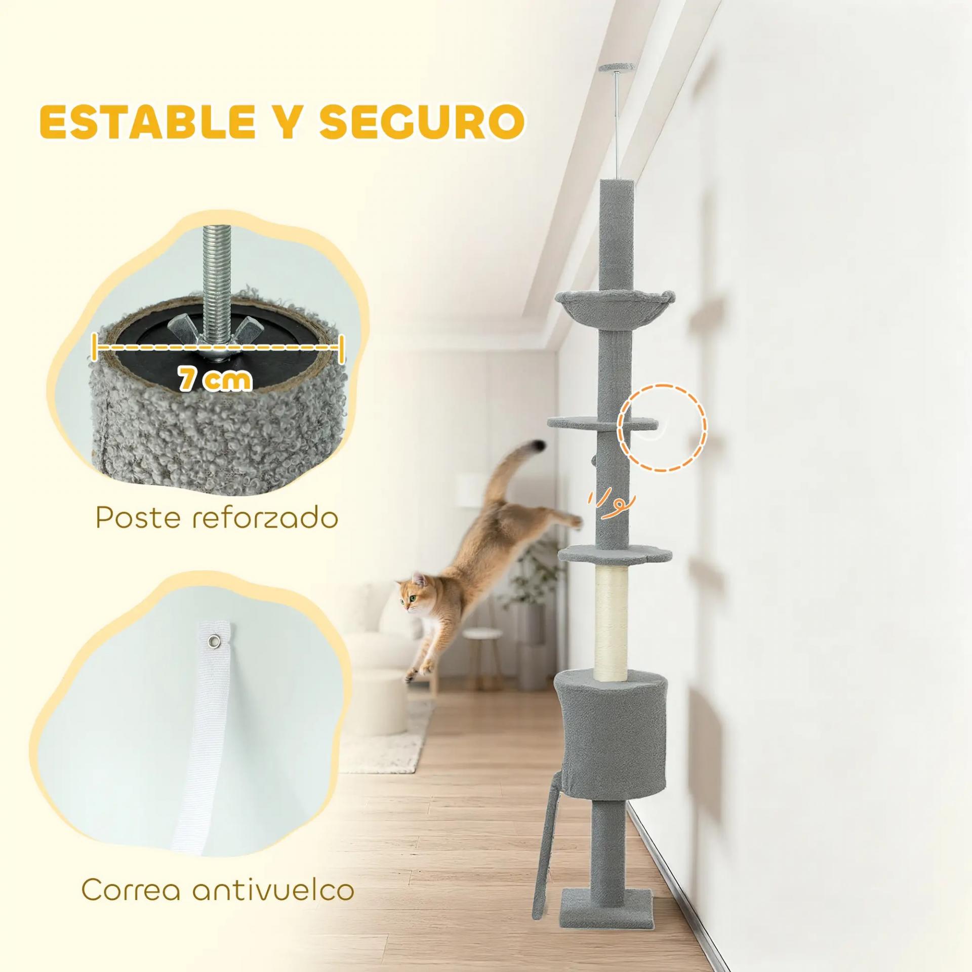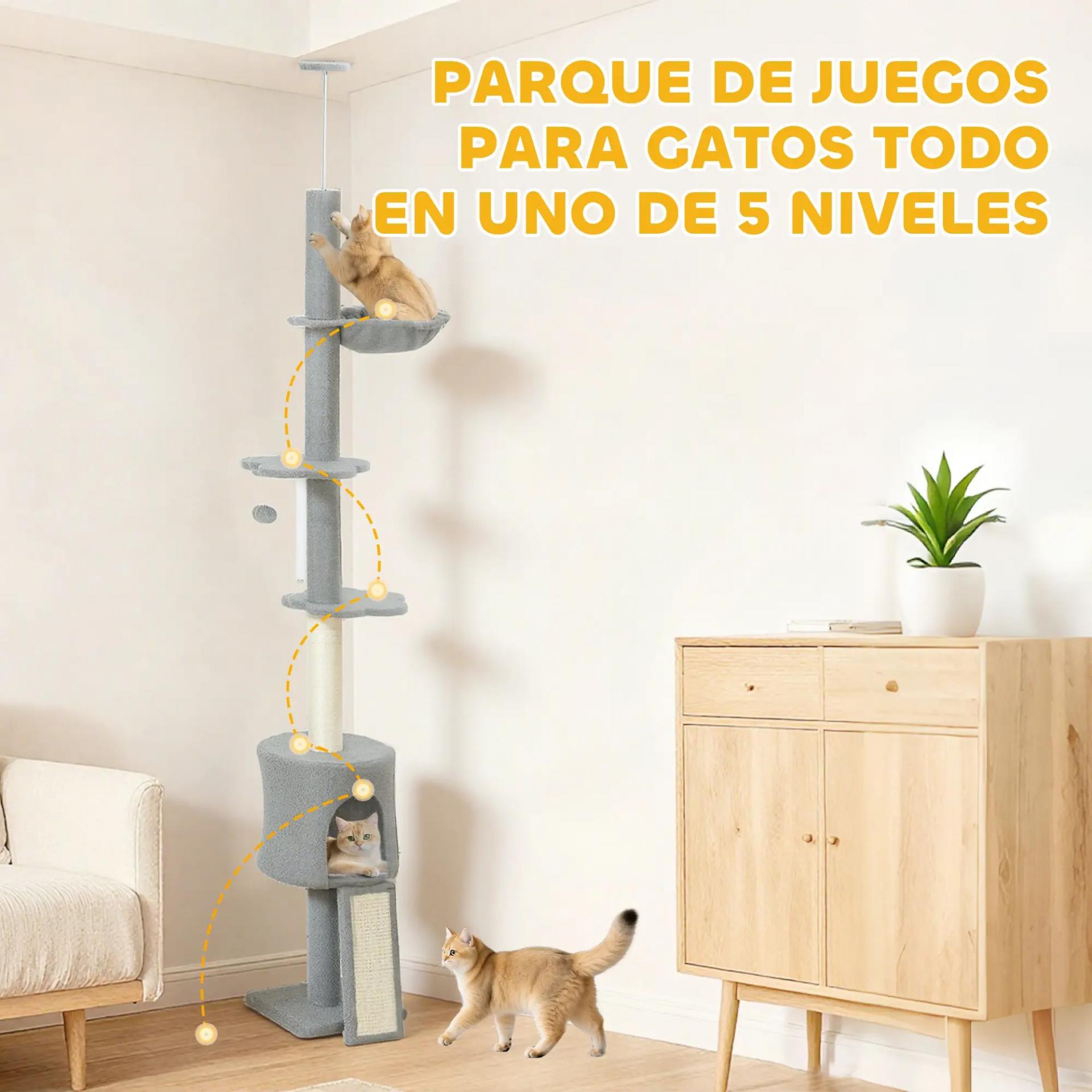 - AHORRA ESPACIO: Con altura regulable entre 220-240 cm, este árbol rascador para gatos de suelo a techo aprovecha al máximo la verticalidad, siendo ideal para pisos o habitaciones pequeñas y ofreciendo un paraíso compacto para 1-2 gatos