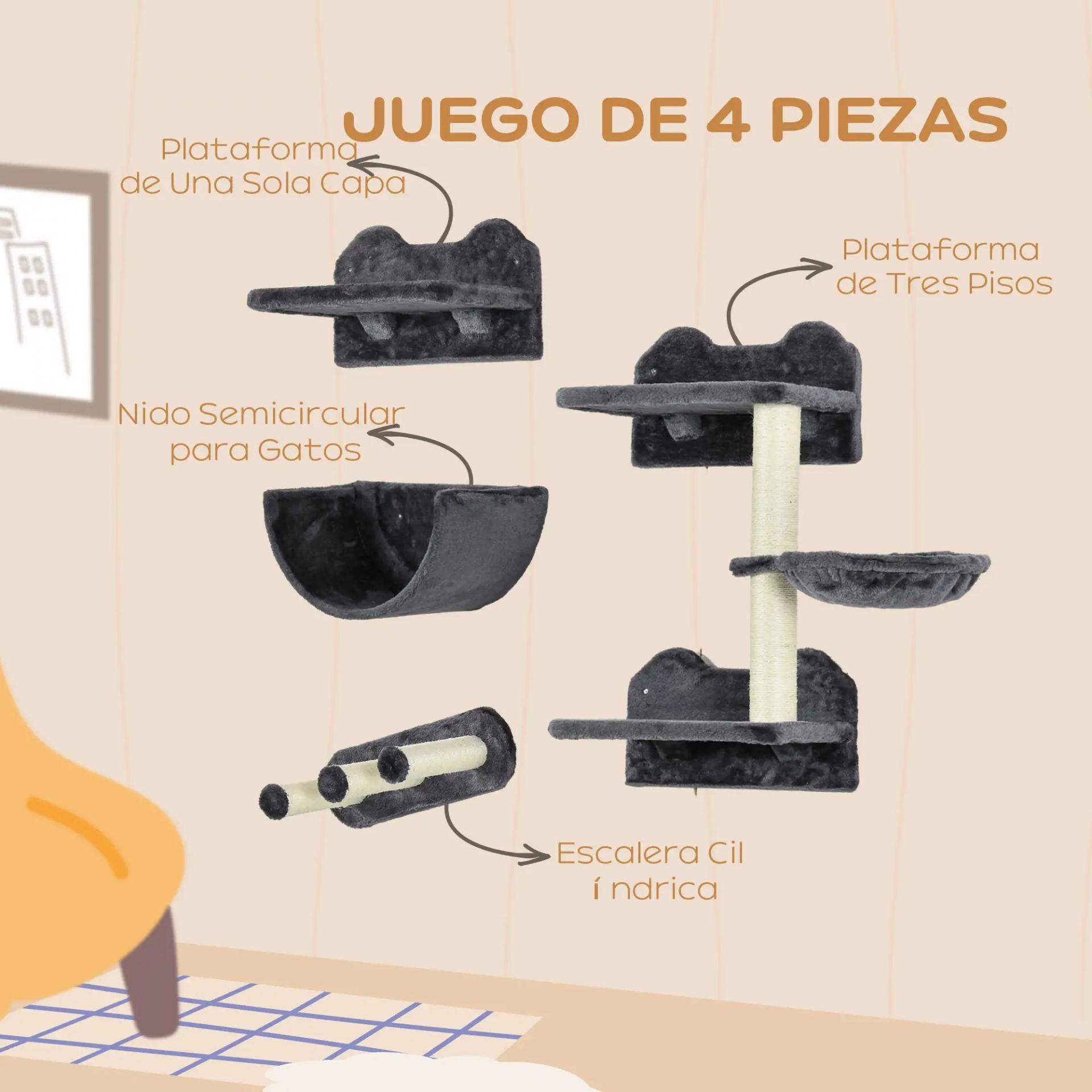 Juego de Escalada para Gatos de Pared Estantes para Gatos 4 Piezas Hamaca Nido Plataformas para Saltar Gris Oscuro