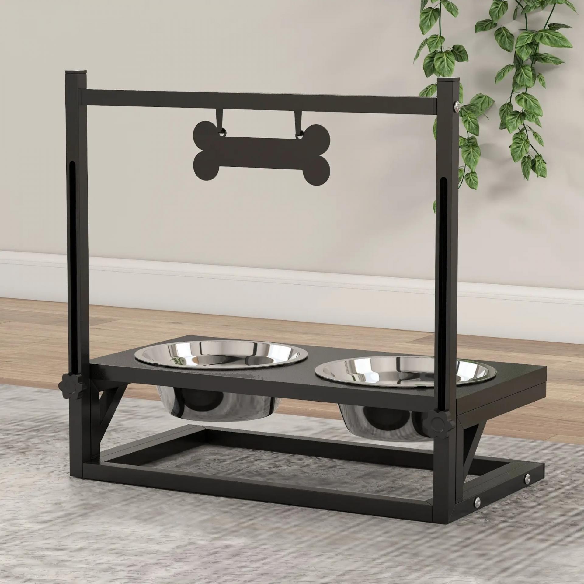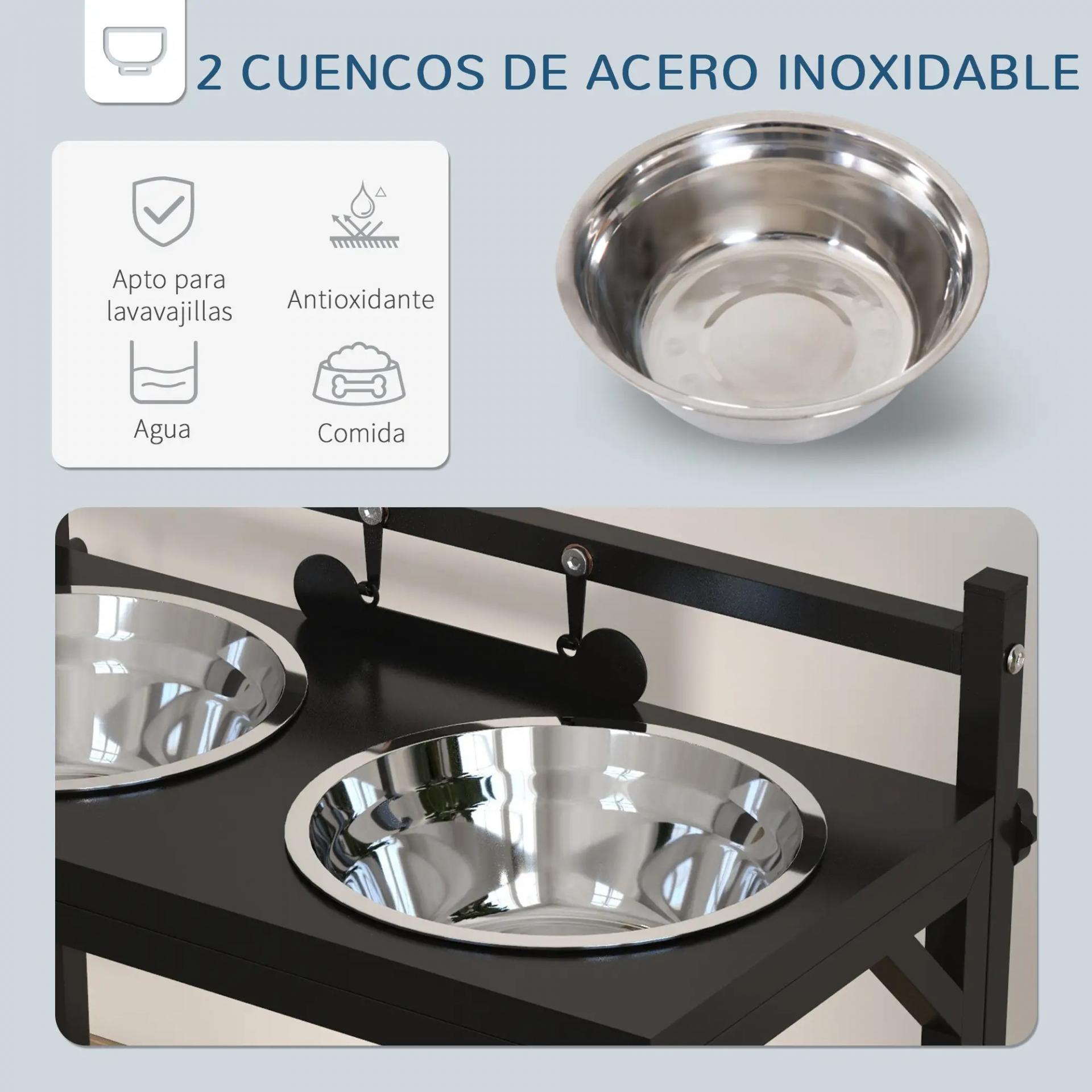 Comedero Elevado para Perros con 2 Tazones de Acero Inoxidable Altura Ajustable y 1 Placa de Metal 40,5x22x39 cm Negro