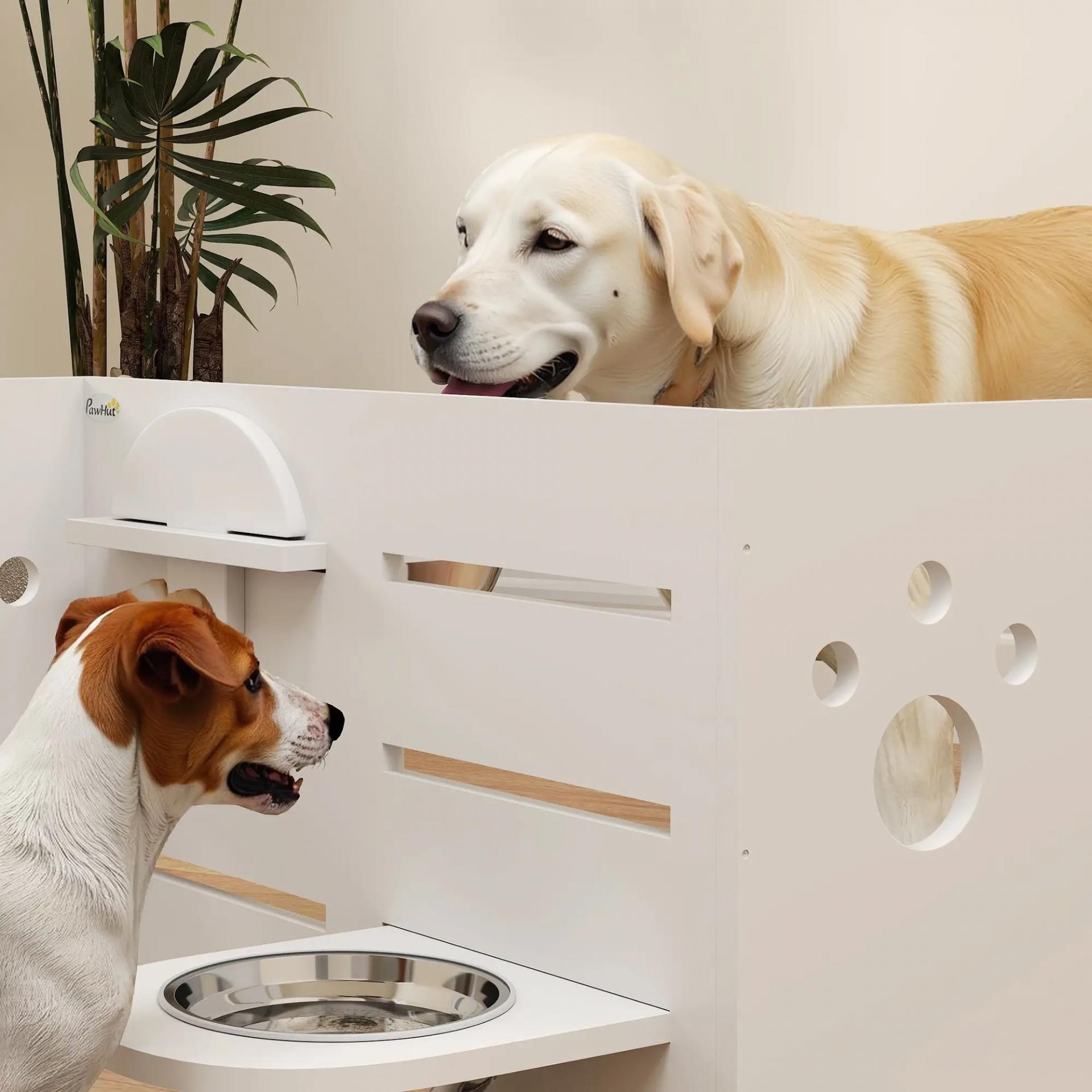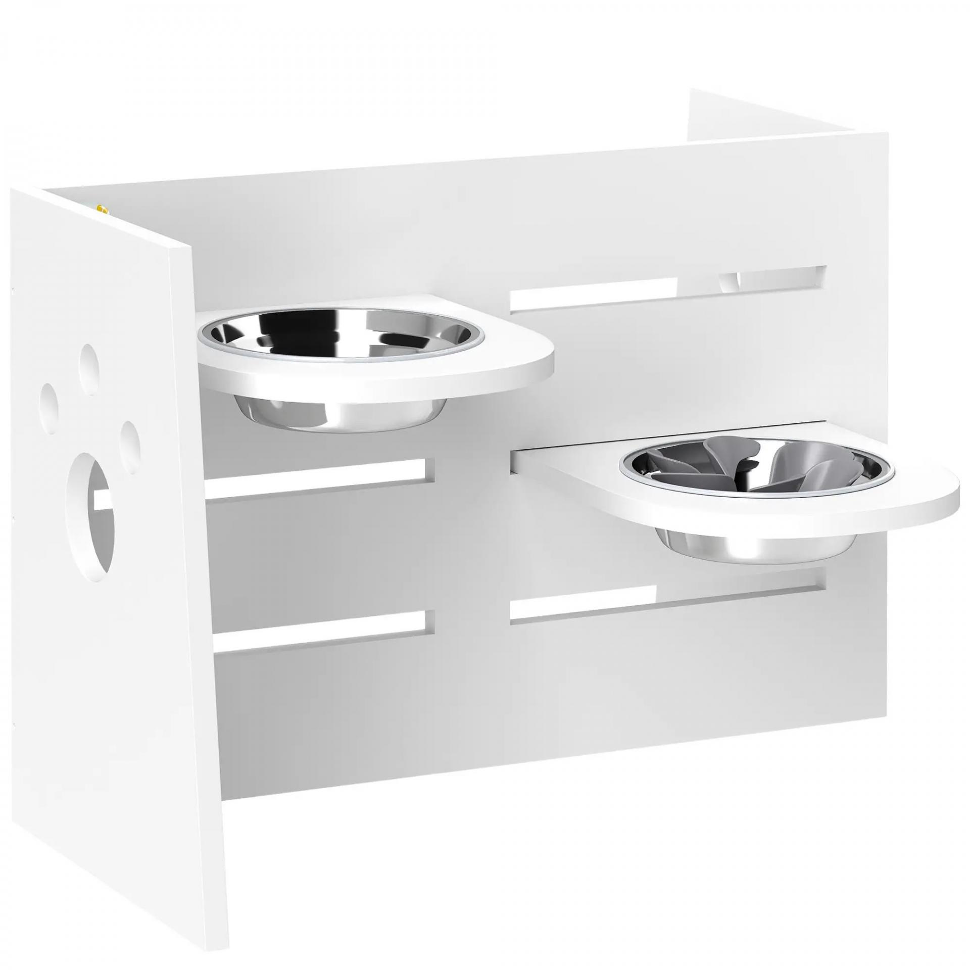 Comedero Elevado Doble para Perros con Altura Ajustable y Sistema de Alimentación Lenta 63x58,5x40 cm Blanco