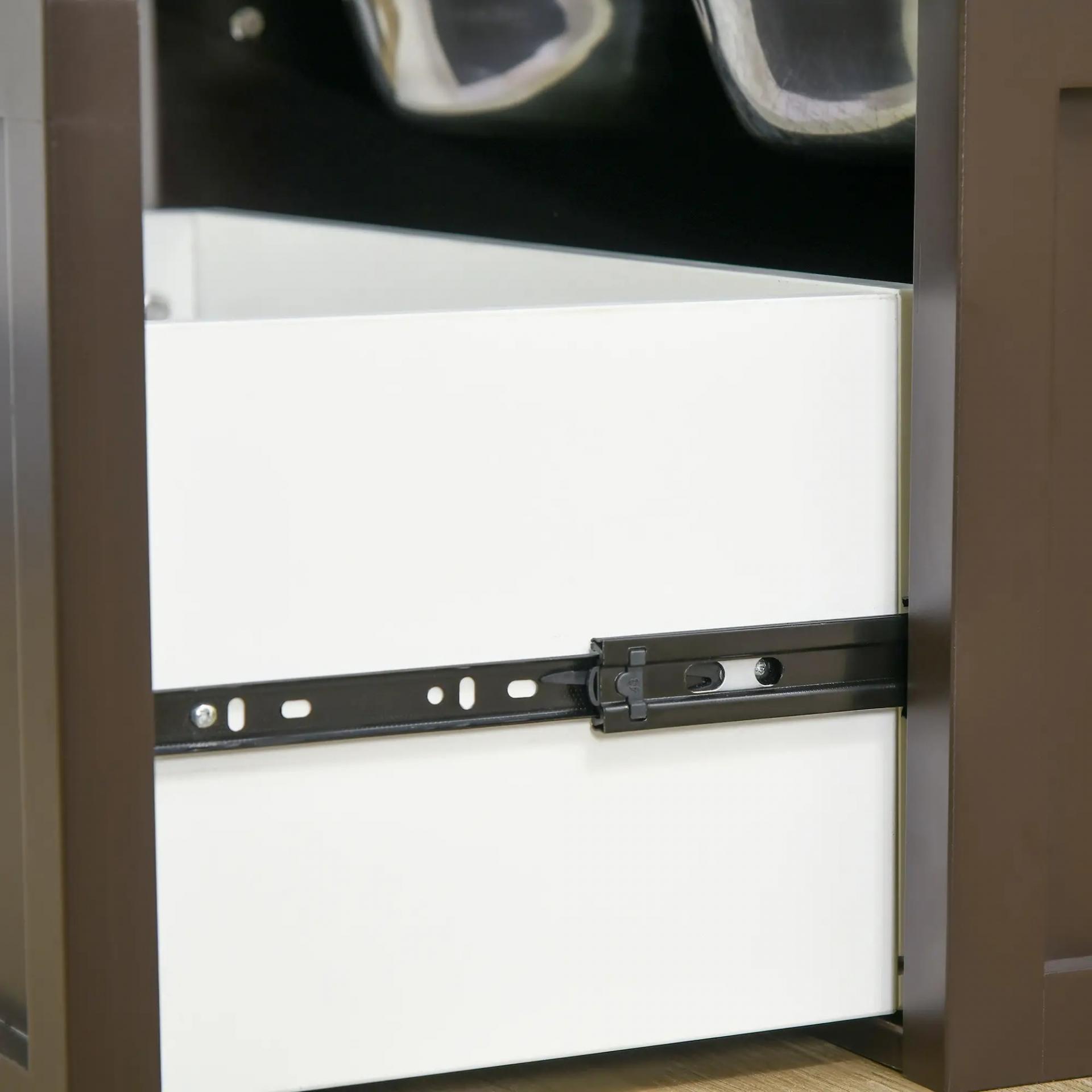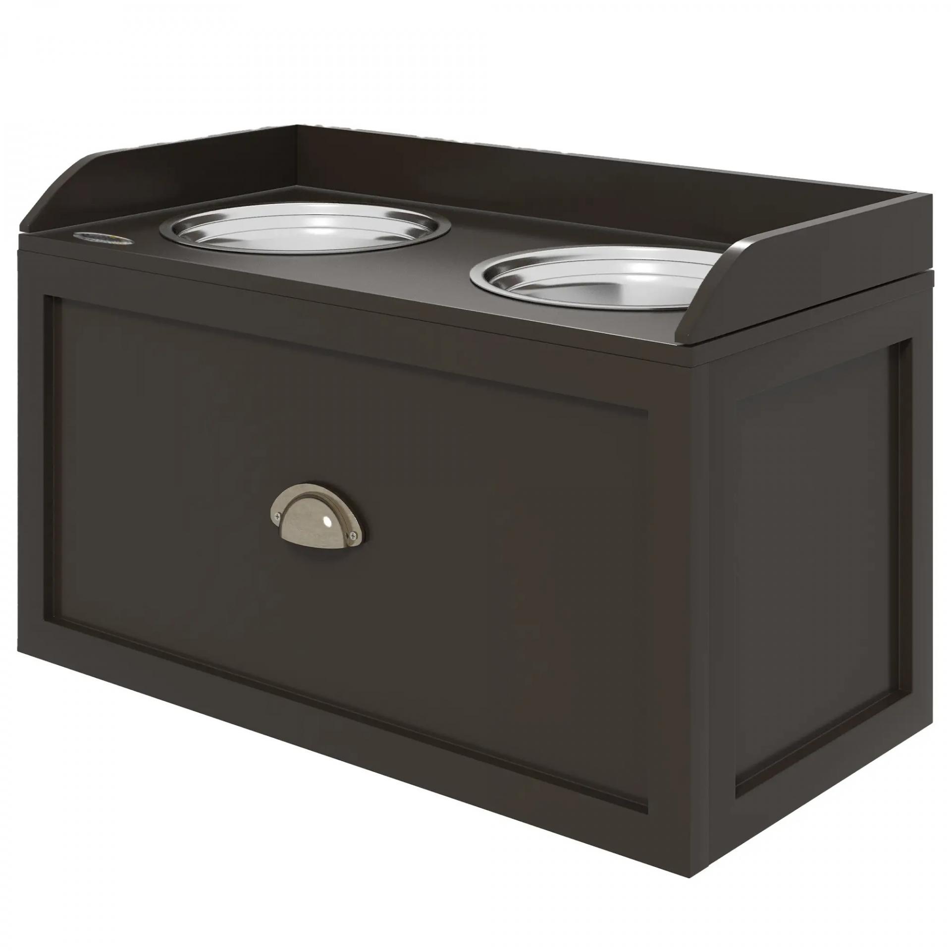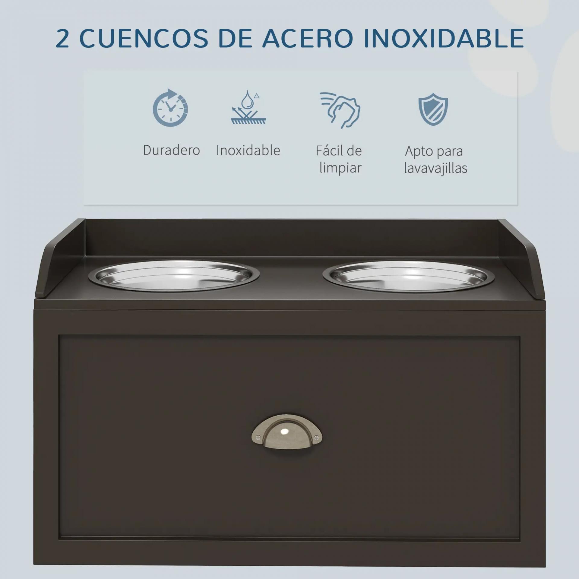 Comedero Elevado para Perros Grandes con 2 Cuencos de 2000 ml de Acero Inoxidable y 1 Cajón 63x30x36 cm Marrón