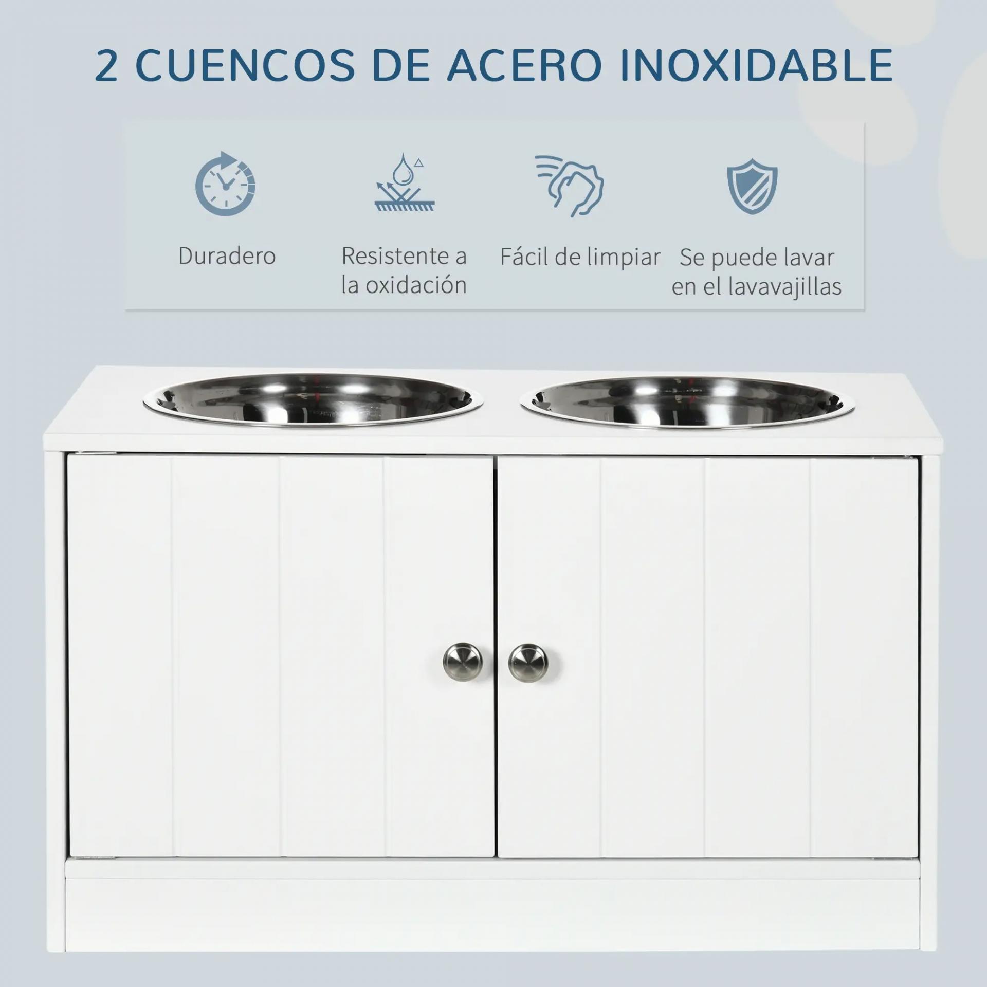 - MEDIDAS TOTALES: 60x30x35,5 cm (LxANxAL). Medidas de los cuencos: Ø24x7 cm (DxAL). Espacio de almacenamiento: 57x28x28 cm (LxANxAL). Adecuado para perros grandes de 55 a 65 cm de altura en el hombro. Se requiere montaje