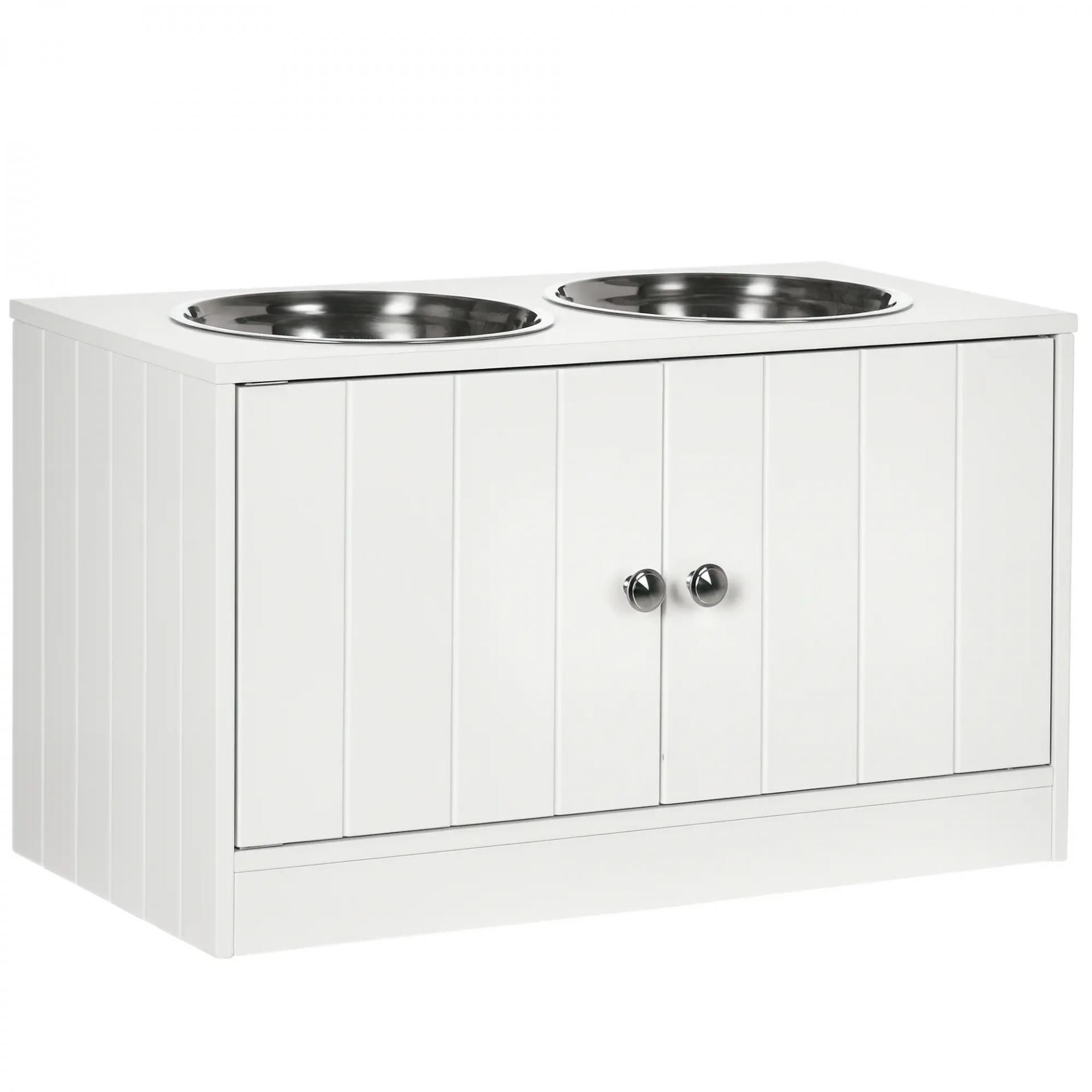Comedero Elevado para Perros Grandes con 2 Cuencos de 2000ml y Almacenamiento Oculto 60x30x35,5 cm Blanco