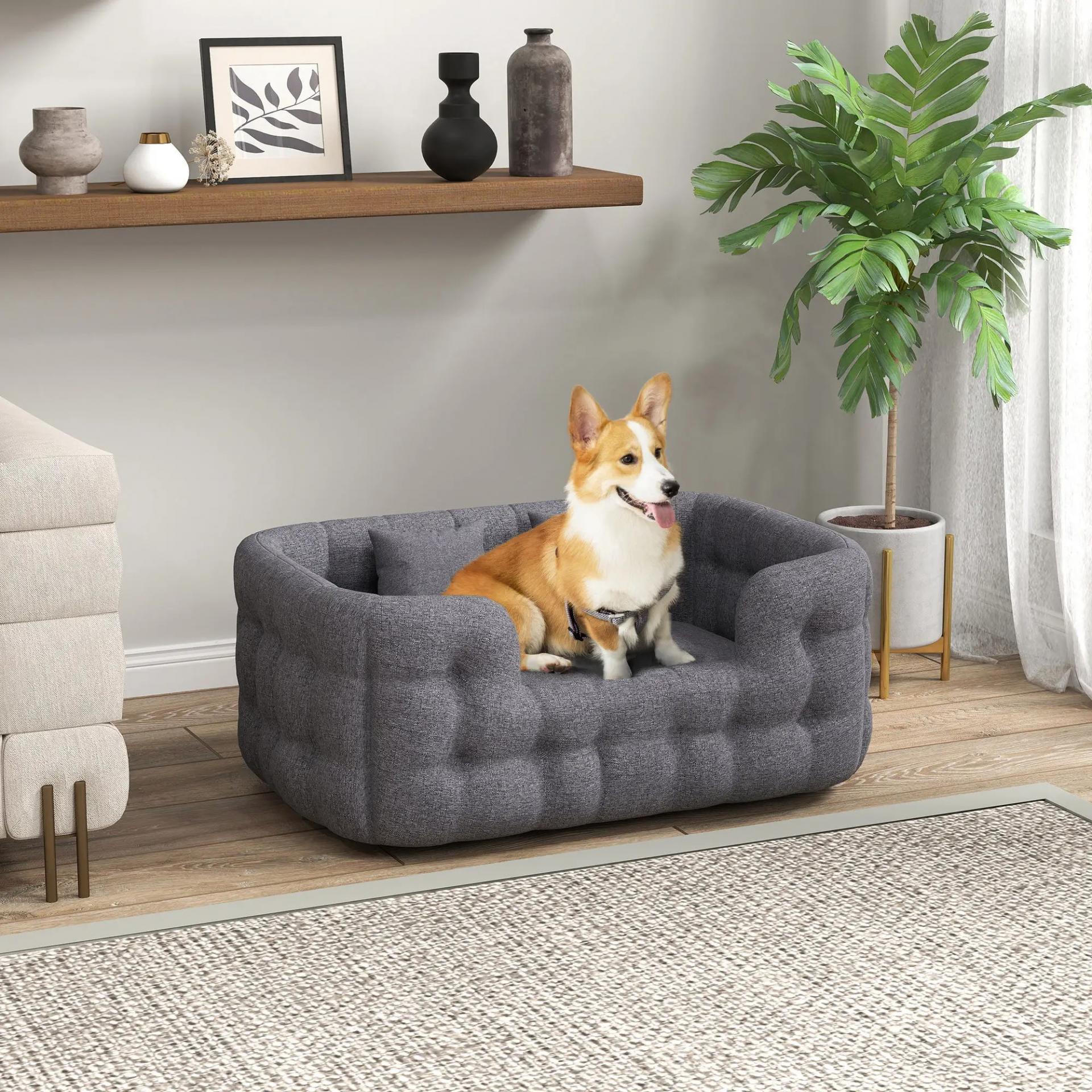 Cama para Mascotas con 2 Almohadas Colchón para Perros Antideslizante con Funda Extraíble y Lavable 90x60x35 cm Gris