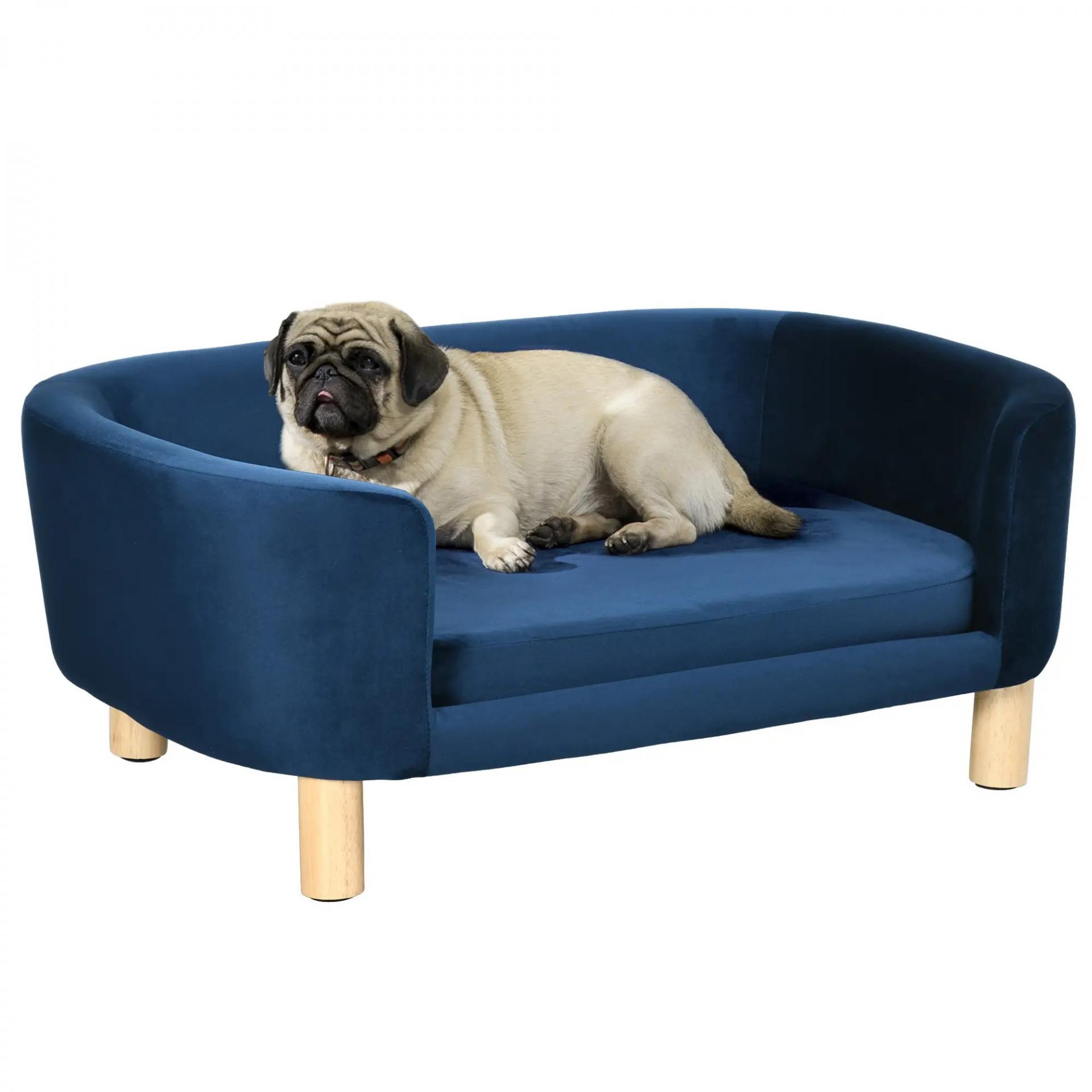 Sofá para Perros Pequeños con Patas de Madera Funda Lavable y Cojín Desmontable 86x55x33 cm Azul