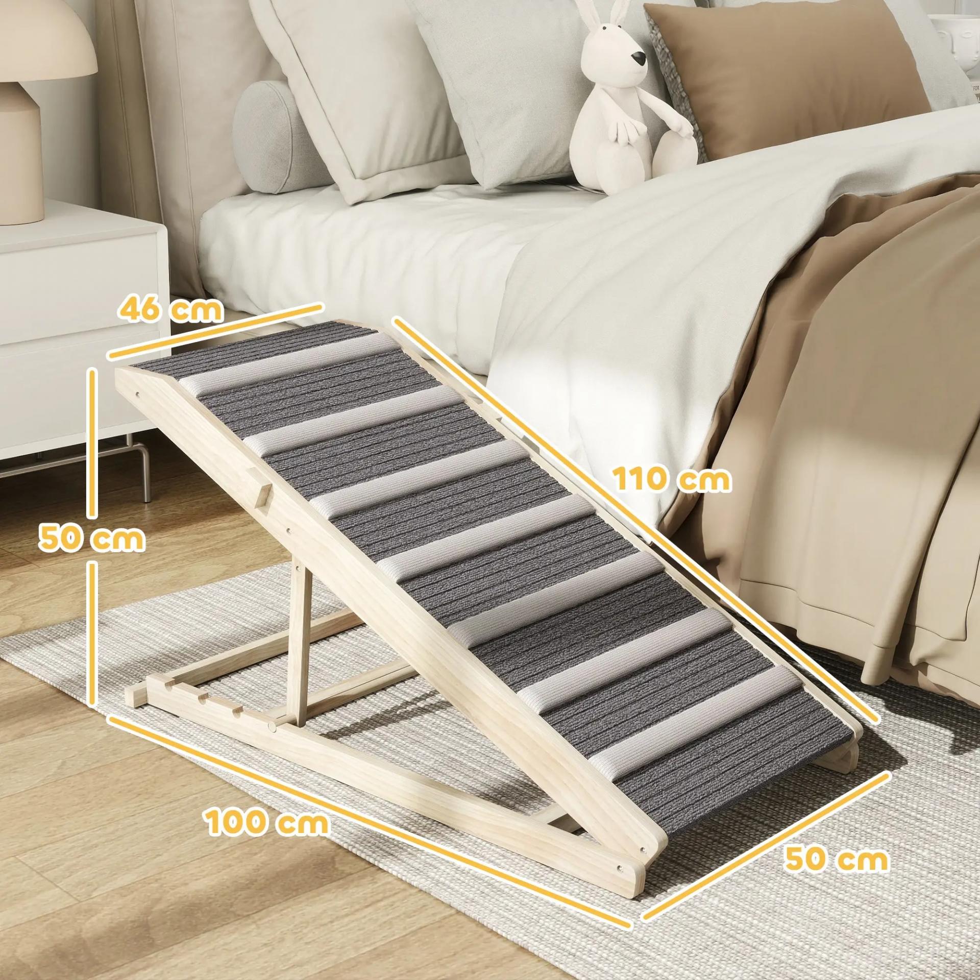 Rampa para Perros Plegable y Altura Ajustable 35-50 cm Rampa para Mascotas de Madera con Alfombrilla Antideslizante