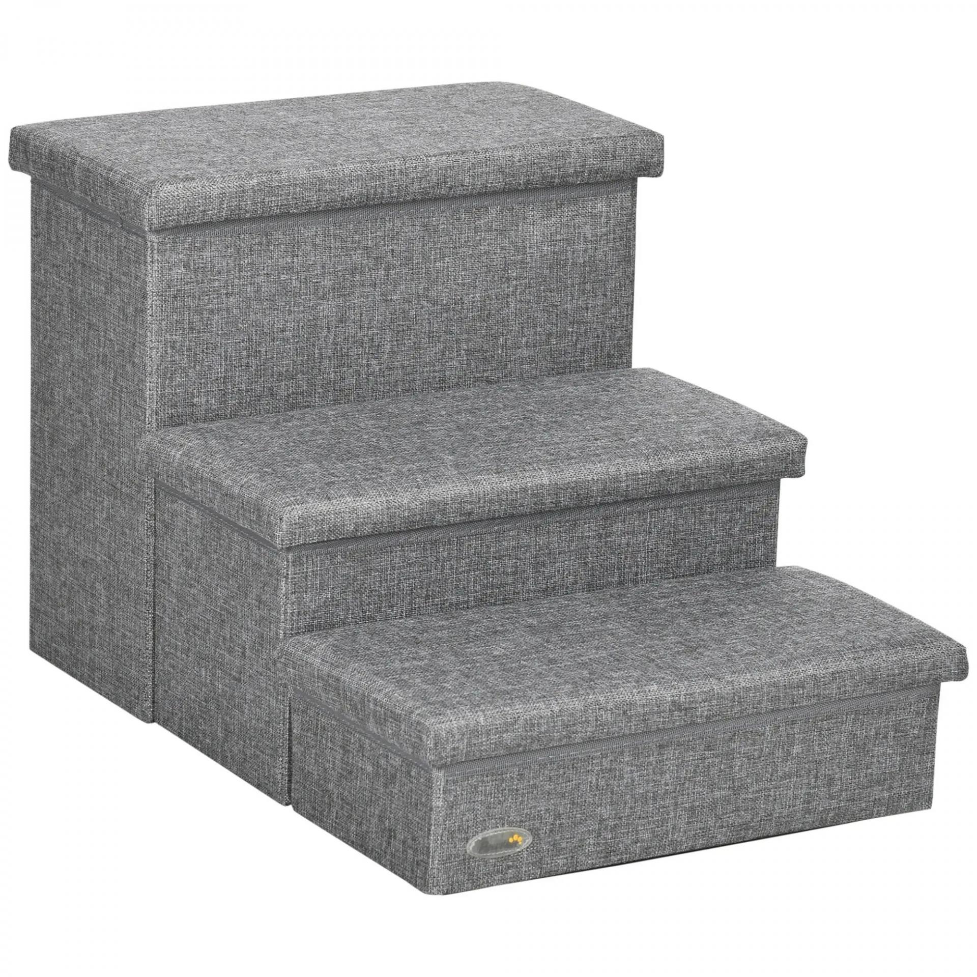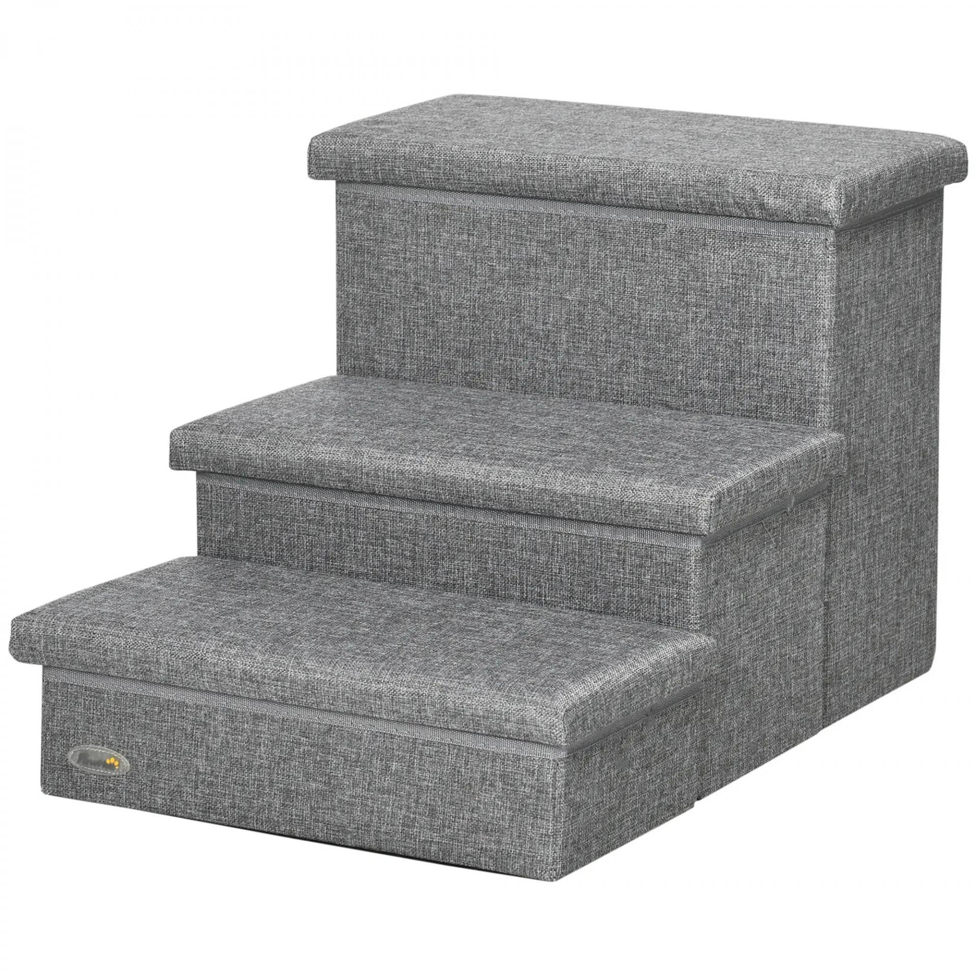 Escalera para Mascotas de 3 Peldaños Escalones para Perros Gatos con Espacio de Almacenamiento 63,5x42,5x40,5 cm Gris