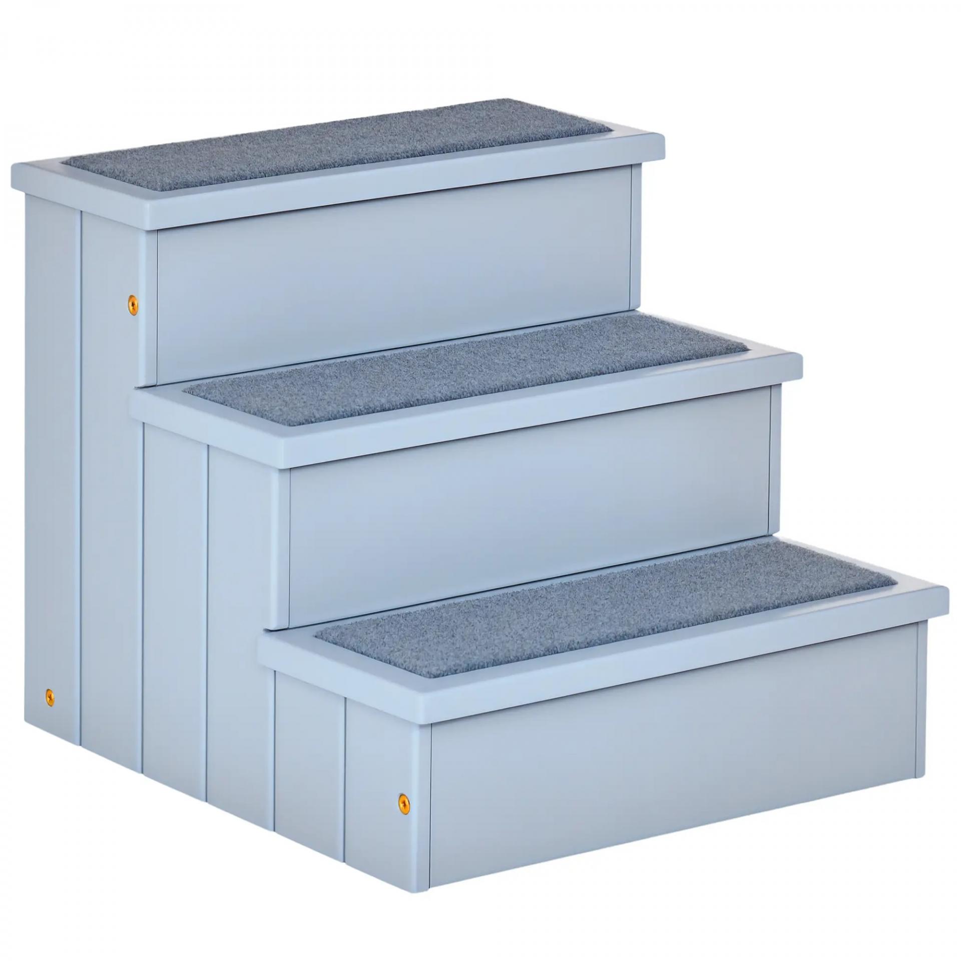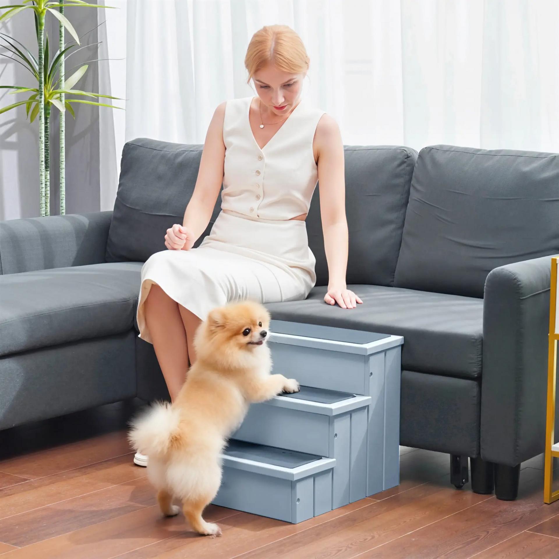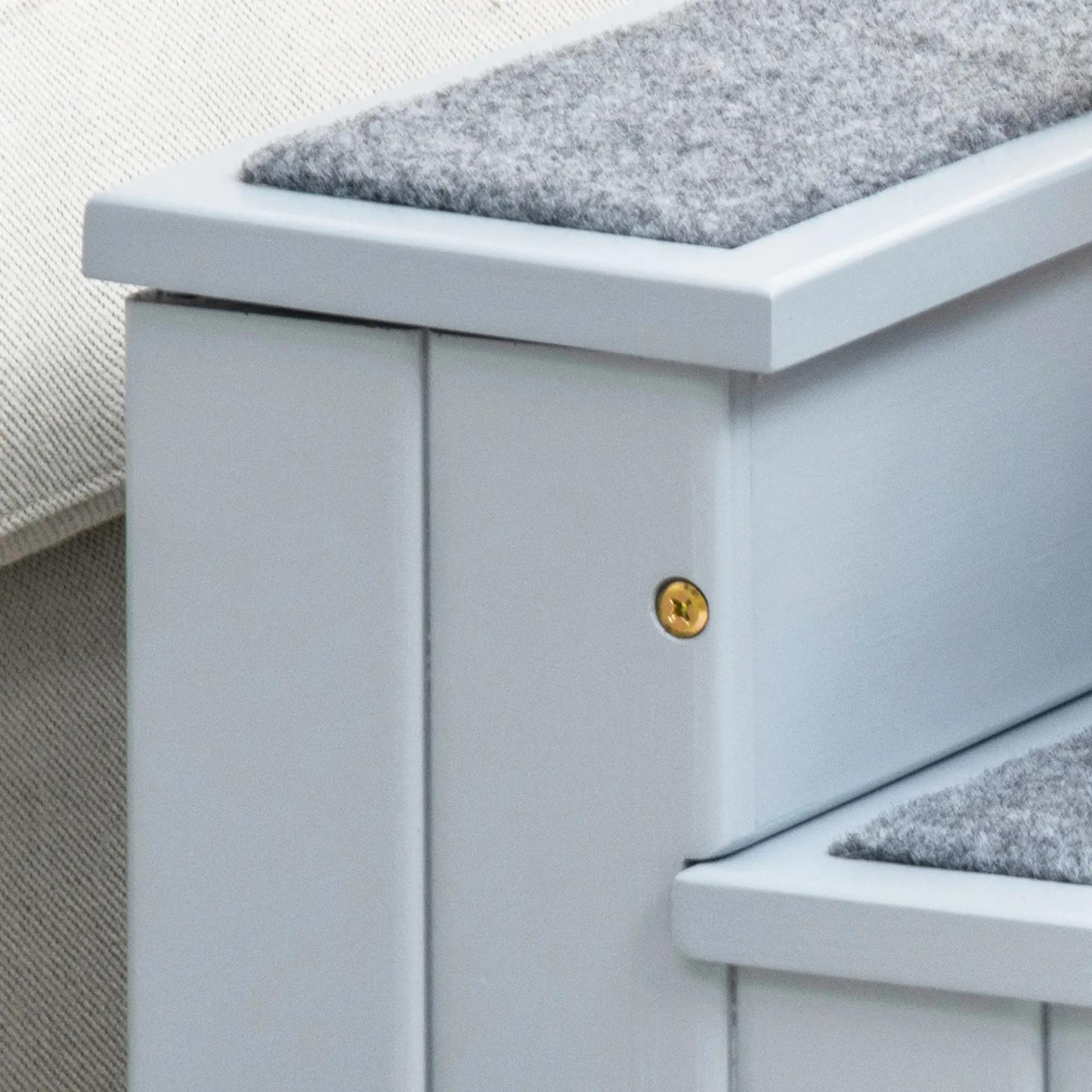 Escalera para Mascotas 3 Peldaños con Espacio de Almacenaje y Alfombra Antideslizantes Portátil 40,5x44,5x38 cm Gris