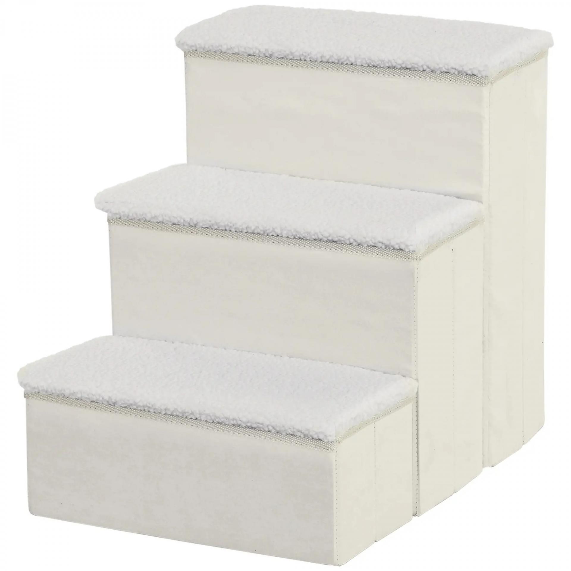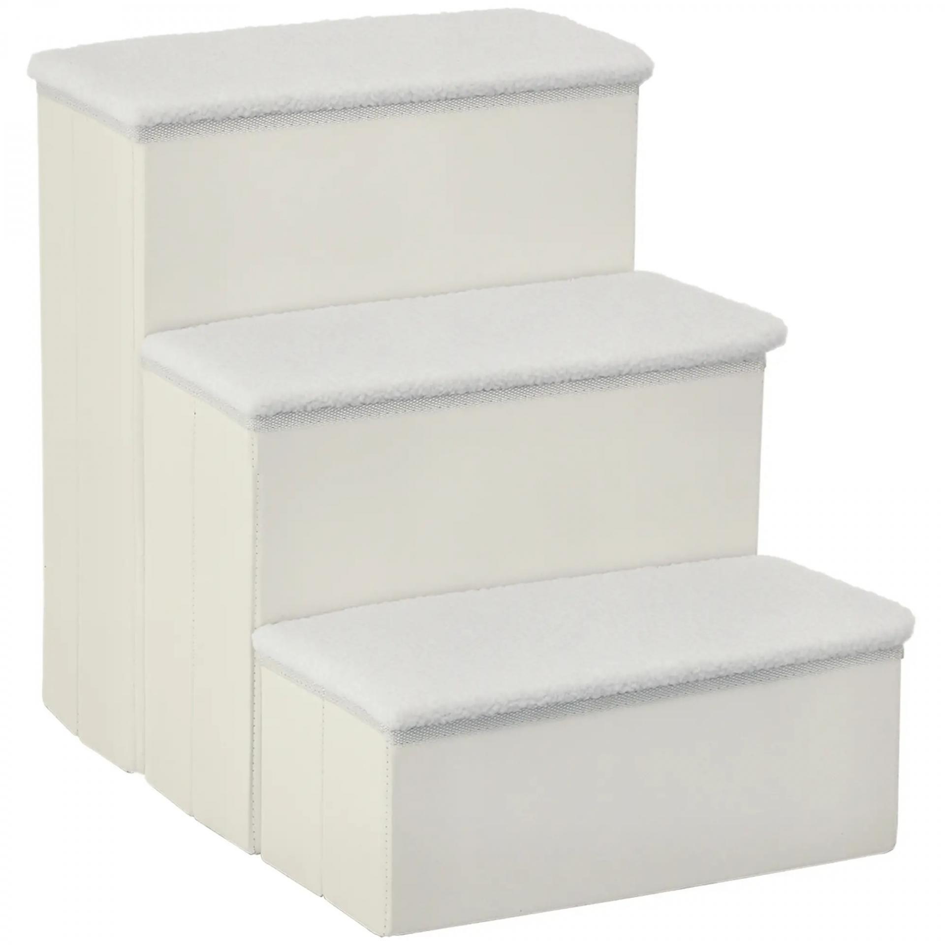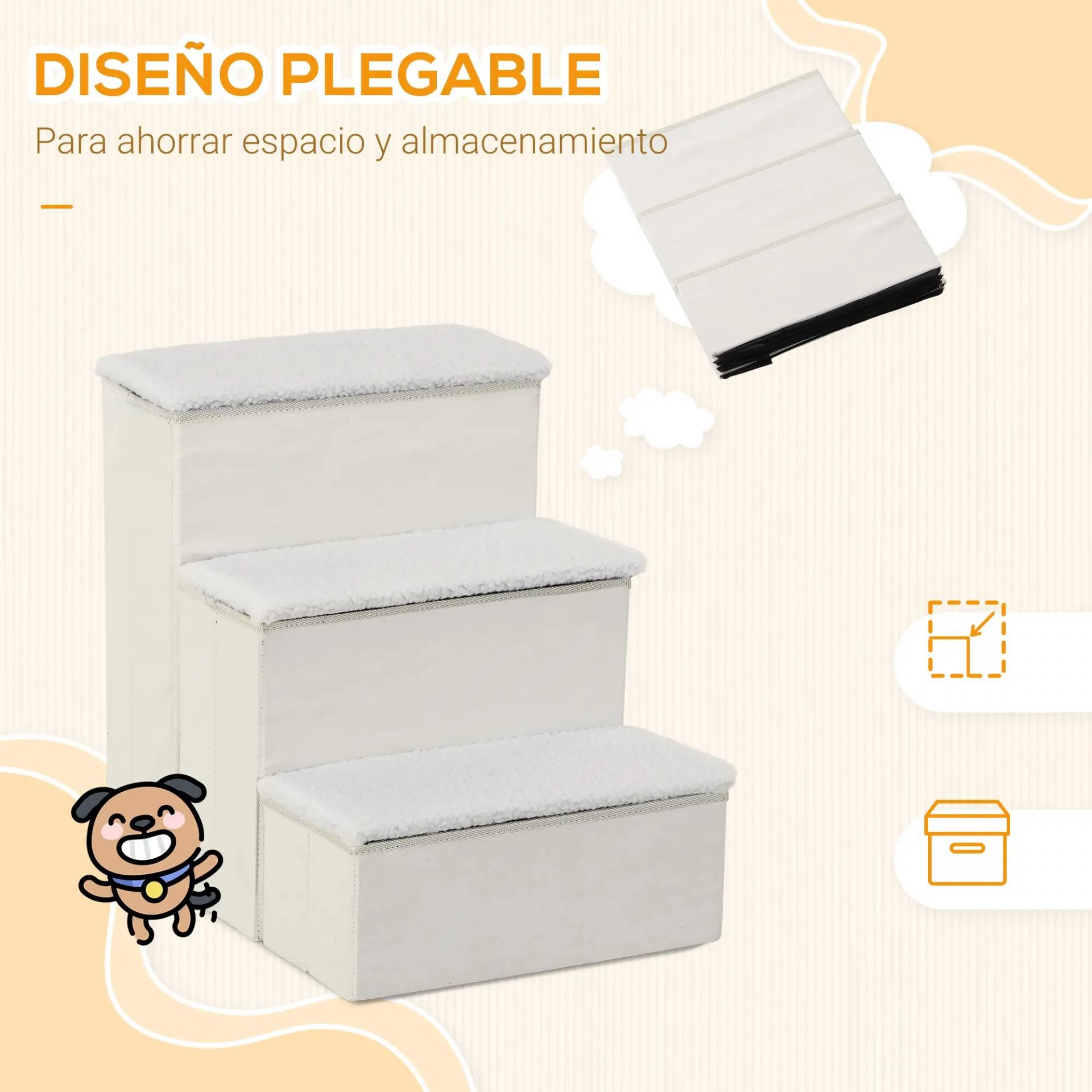 Escalera para Mascotas de 3 Peldaños Plegable con Tapas Abatibles y Espacio de Almacenamiento 3 Escalones de Perros Gatos Pequeños para Cama Sofá 40x54x48 cm Blanco