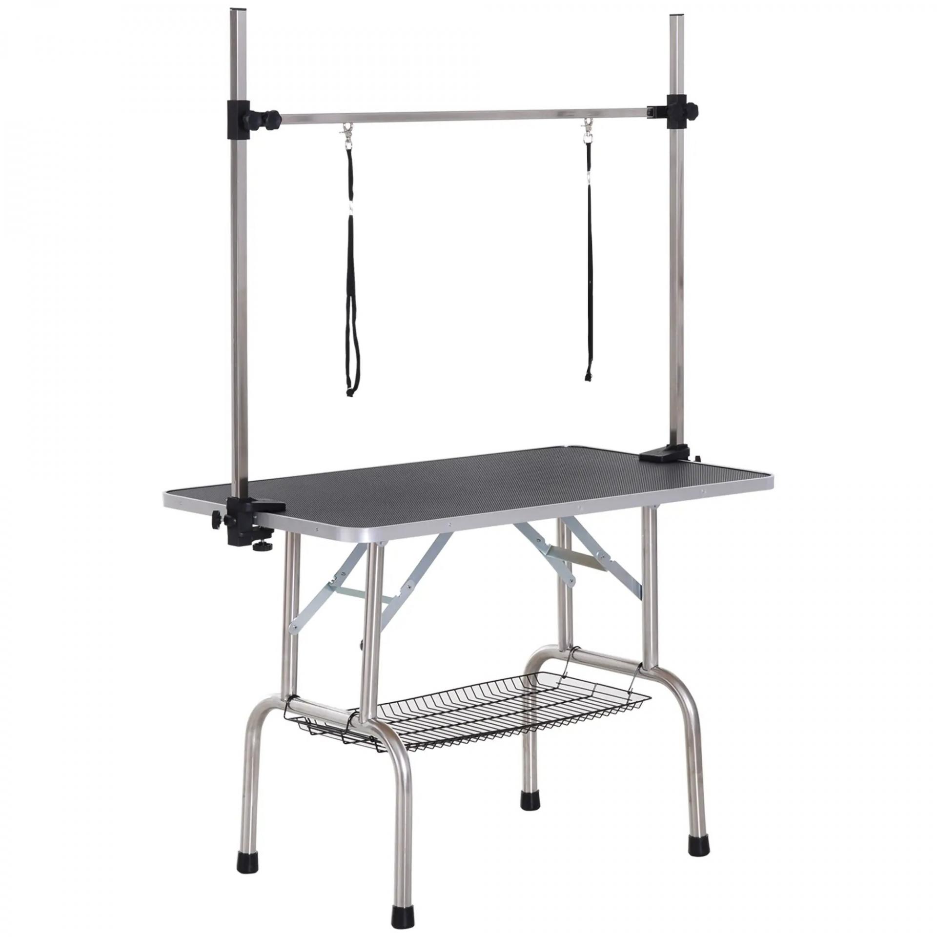 Mesa de Peluquería para Mascotas Mesa de Aseo Plegable con Estante de Almacenamiento Altura Ajustable 20-80 cm 107x60x170 cm Negro