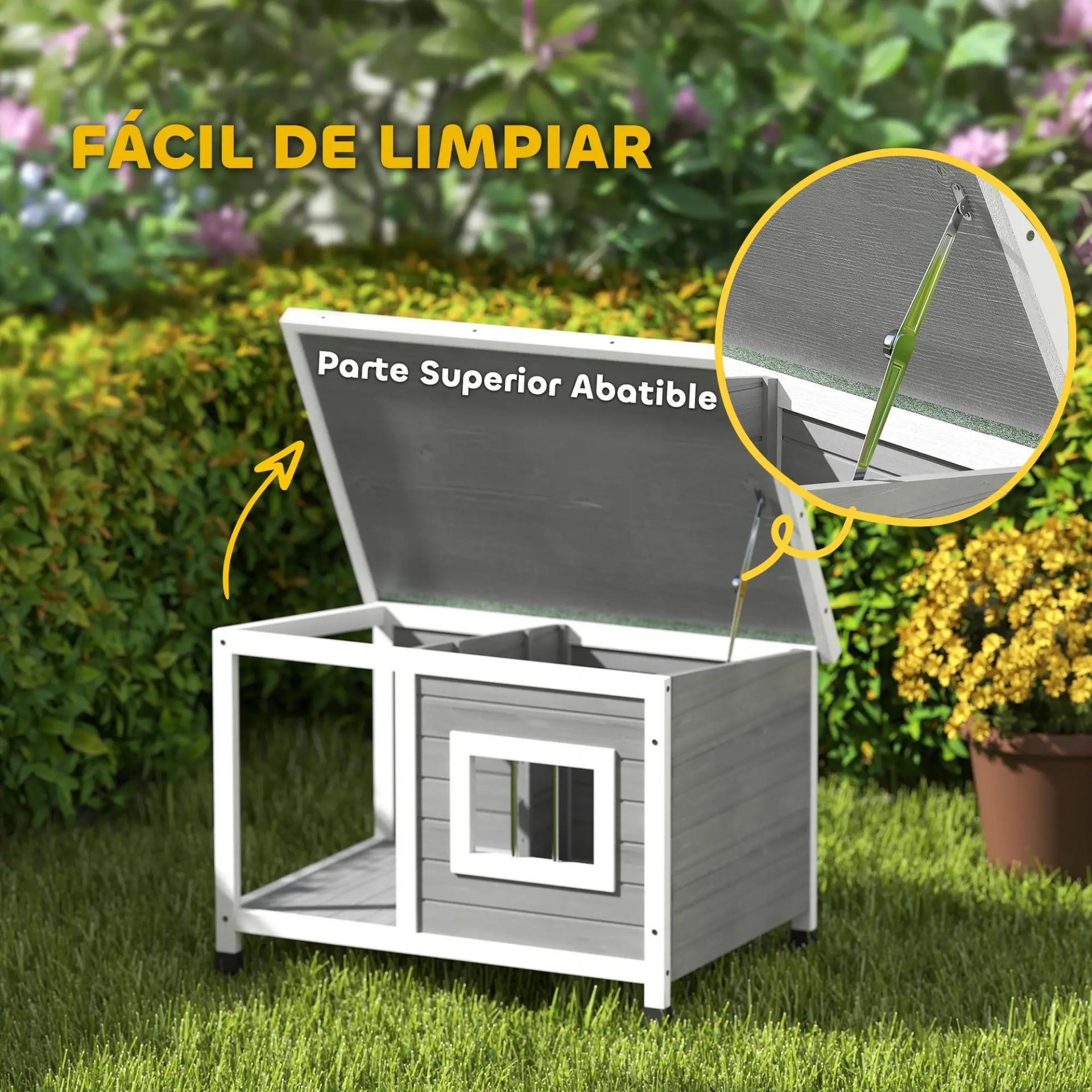 Casa para Perros de Madera 85,5x62x60 cm con Techo Asfáltico Abatible Puerta y Ventana para Perros Pequeños Gris