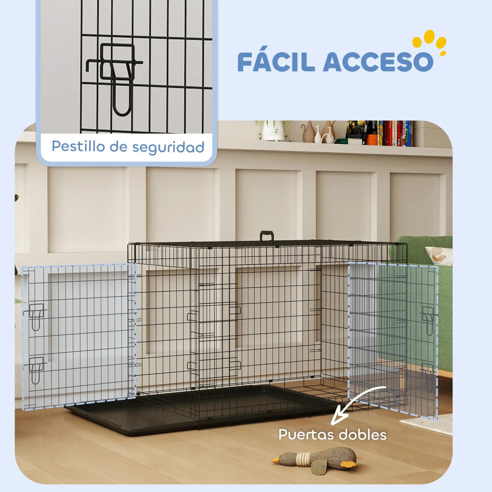 ACCESO FÁCIL: Esta jaula para perros tiene dos puertas con cerradura de seguridad para que tu mascota pueda entrar y salir con facilidad y para que una vez dentro esté totalmente segura