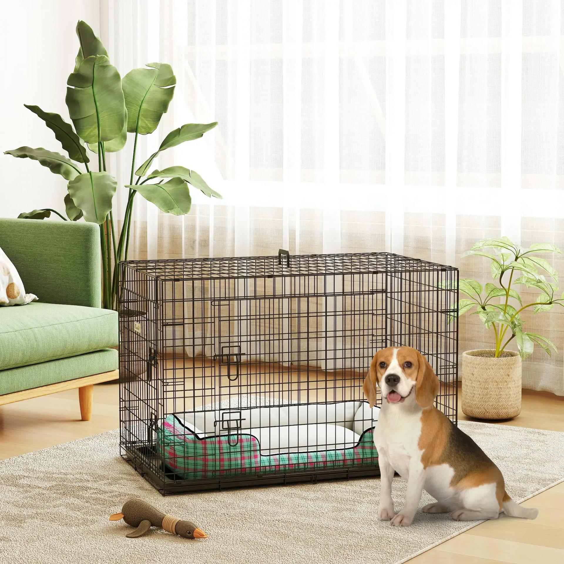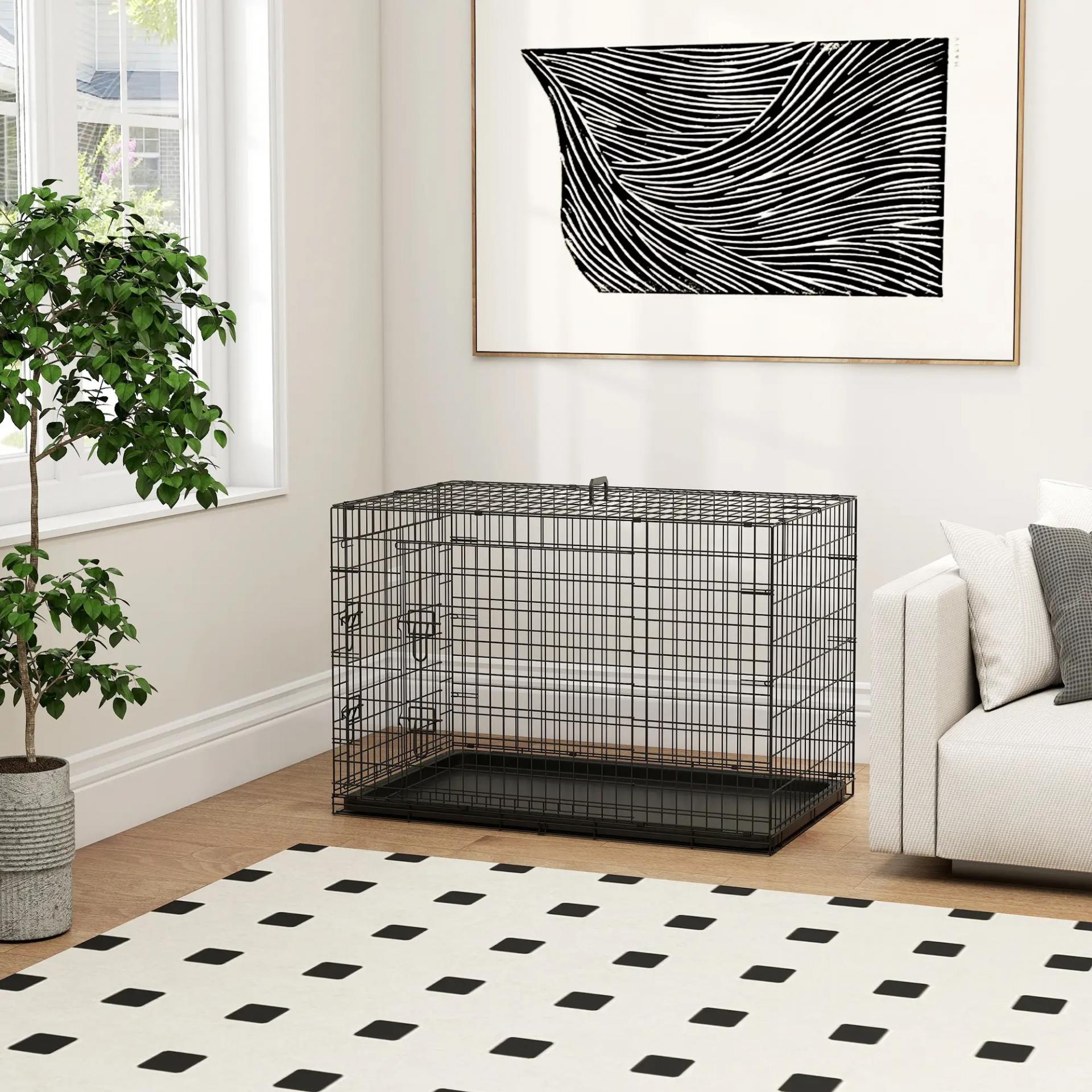 Jaula para Perros Plegable Transportín para Perros con 2 Puertas Bandeja Extraíble Asa de Transporte 92x57x62,5 cm Negro