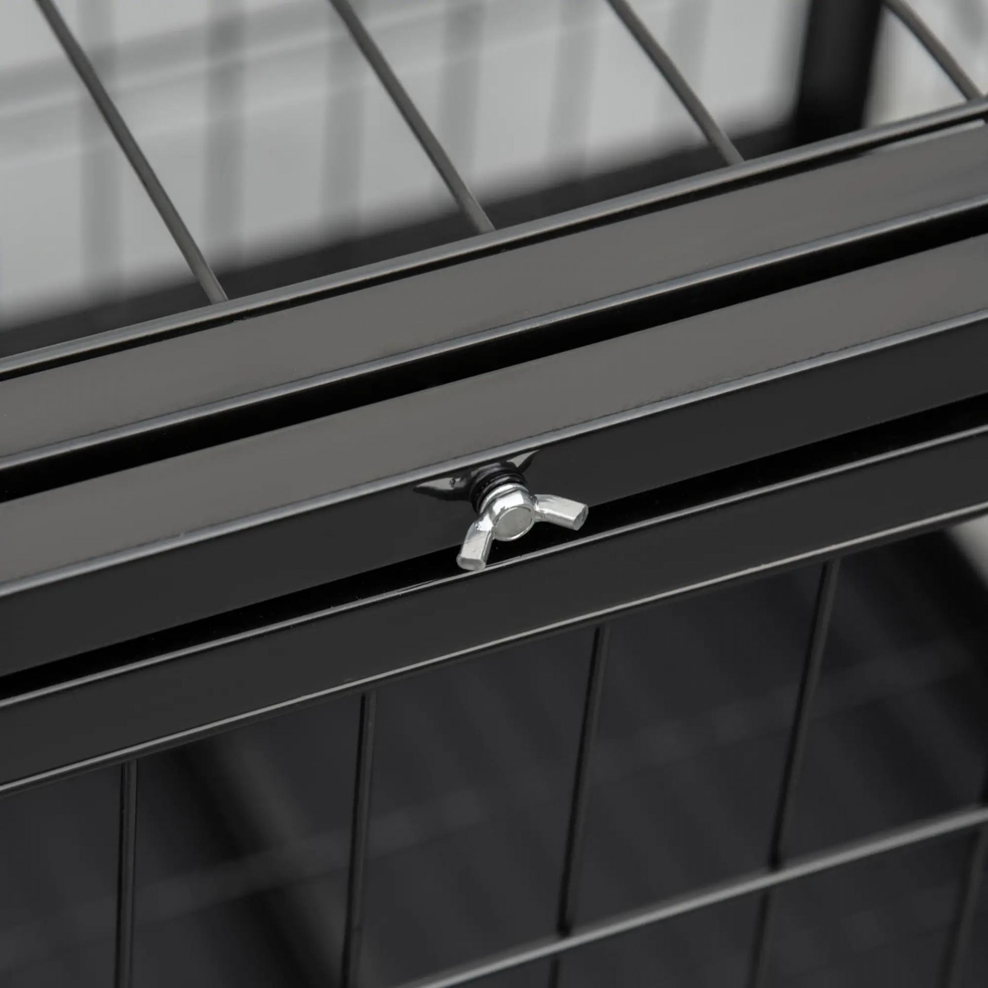 - SEGURA Y ACCESIBLE: Esta jaula metálica para perros cuenta con una gran puerta de entrada con pestillo de seguridad, para evitar que tu perro pueda abrir la puerta y escaparse. La parte superior también se abre. Para que puedas jugar e interactuar directamente con tu mascota