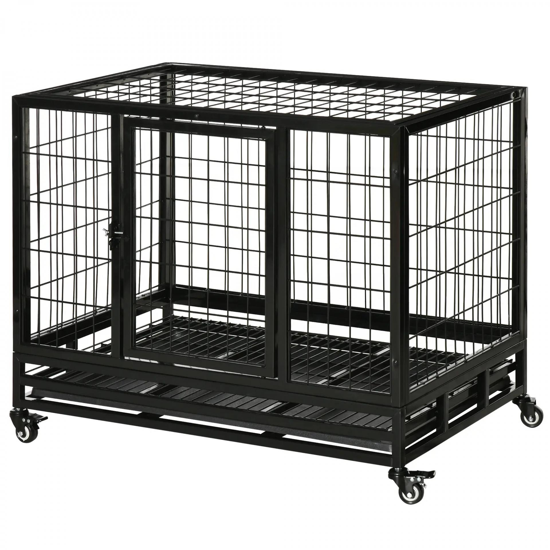 Jaula de Metal para Perros con Ruedas y Frenos Bandeja Extraíble y Puerta con Pestillo para Golden Retriver Labrador 92x62x75 cm Negro