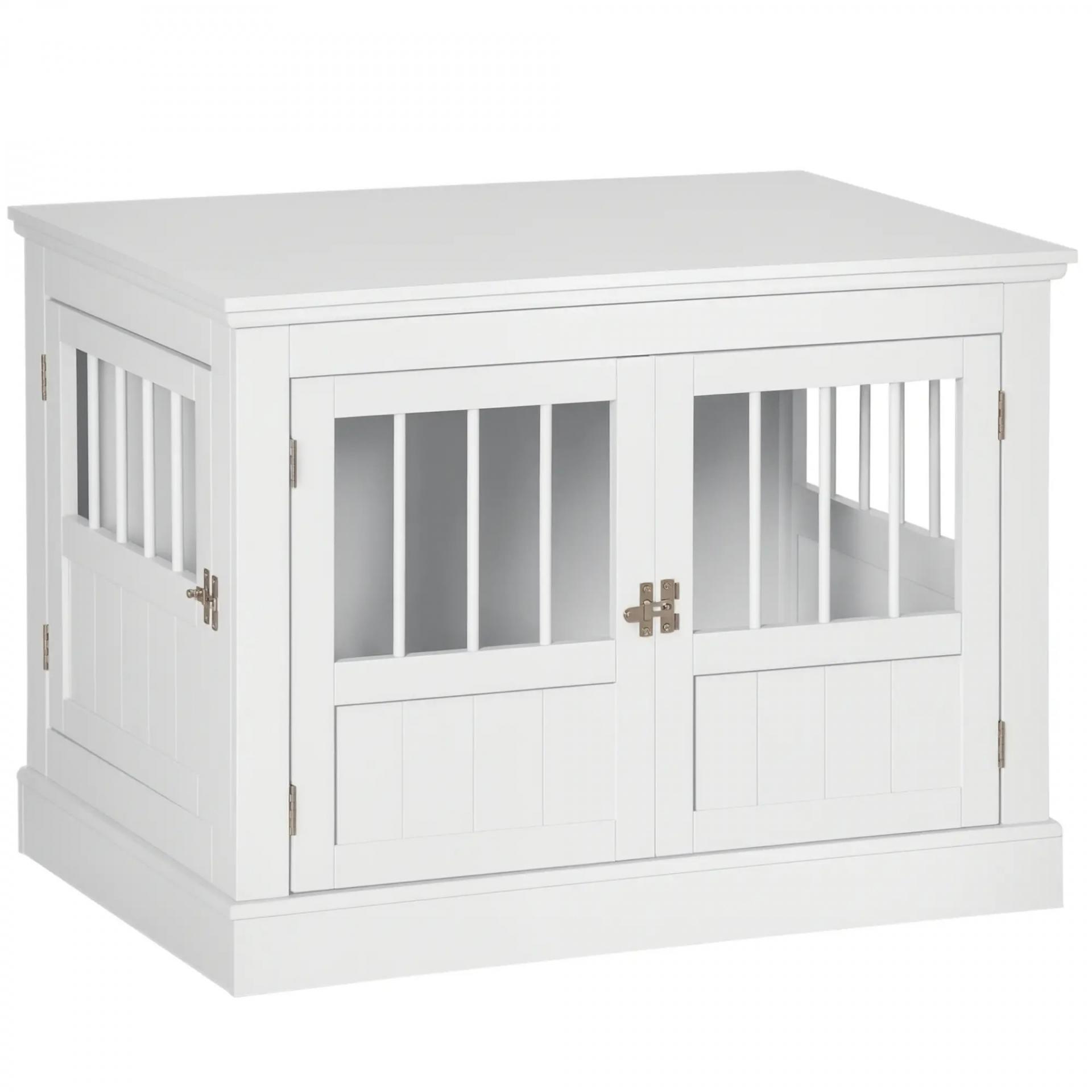 Jaula para Perros Pequeños Mesa Auxiliar Moderna con 3 Puertas Francés con Cierre Magnético 78x53x59,3 cm Blanco