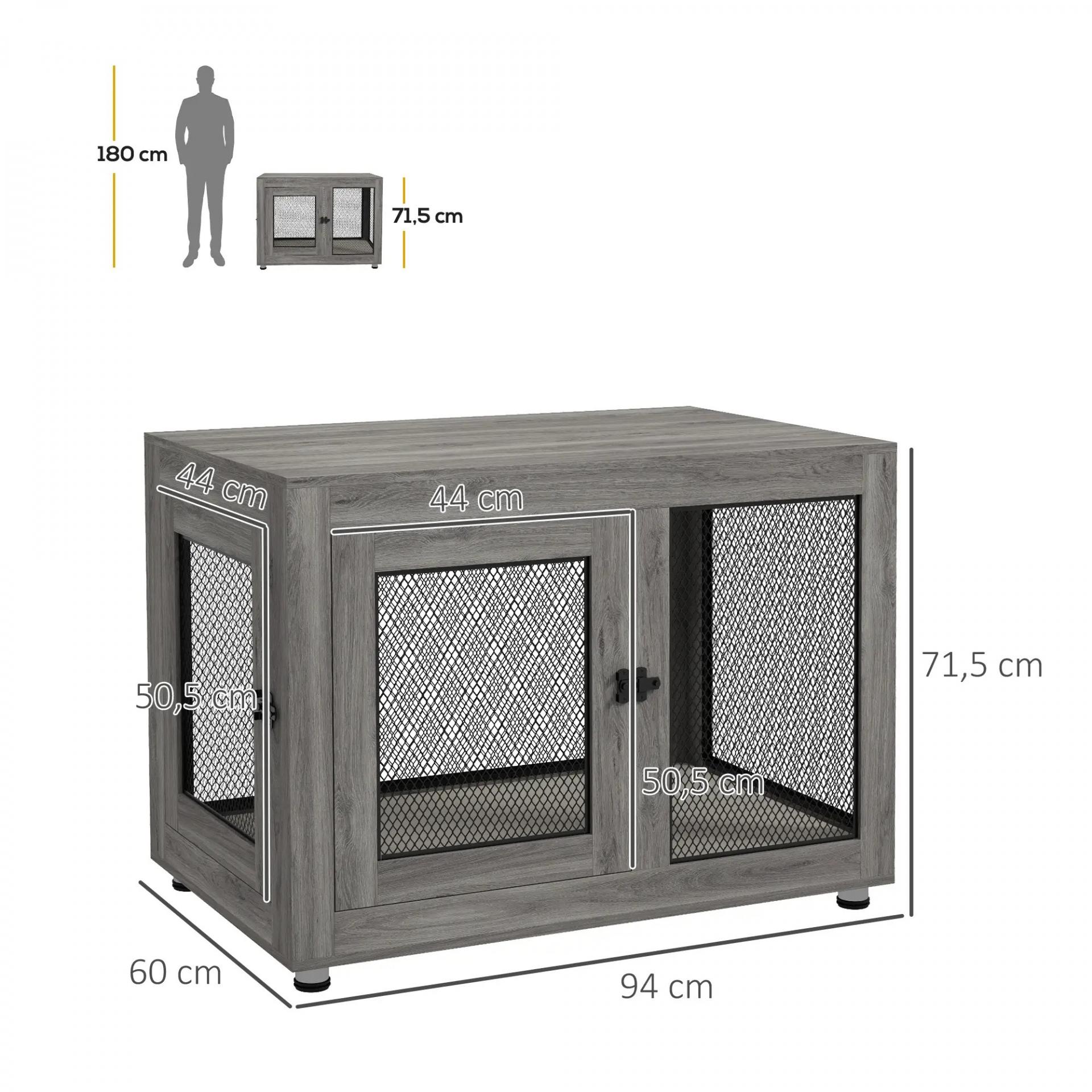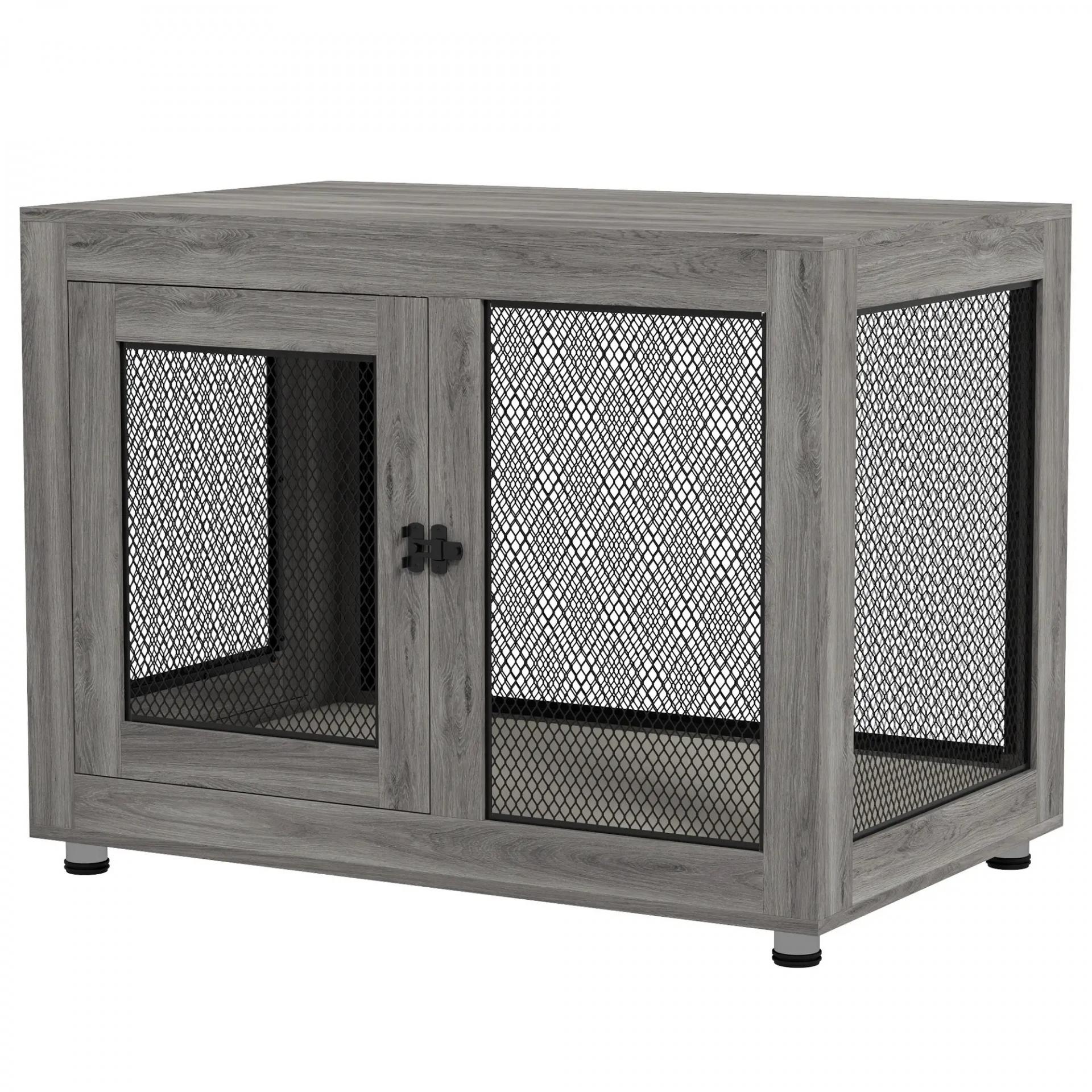 Jaula para Perros Grandes de Interior Mesa Auxiliar con 2 Puertas con Pestillo y Cojín 94x60x71,5 cm Gris