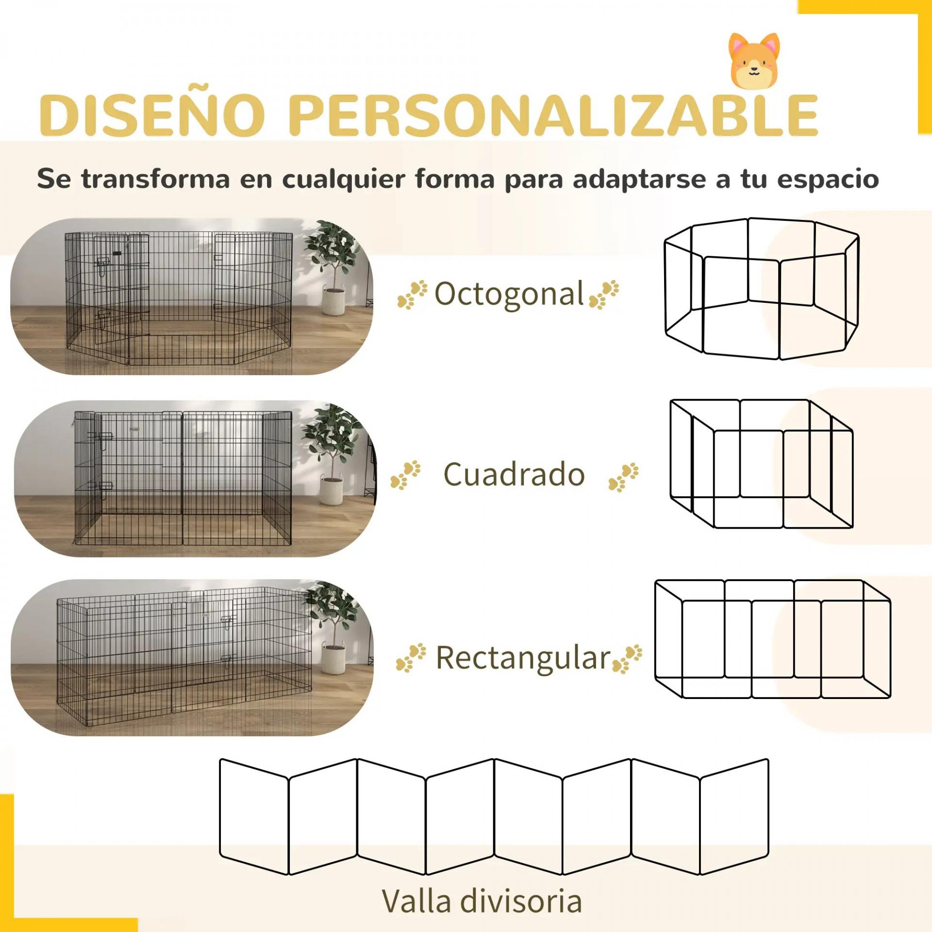 - AMPLIO Y ESPACIOSO: Este recinto metálico ofrece una gran superficie para que tu perro juegue, se relaje y salte. O para que la mamá tenga protegidos a sus cachorros. Gracias a su diseño desmontable, es fácil de guardar y transportar