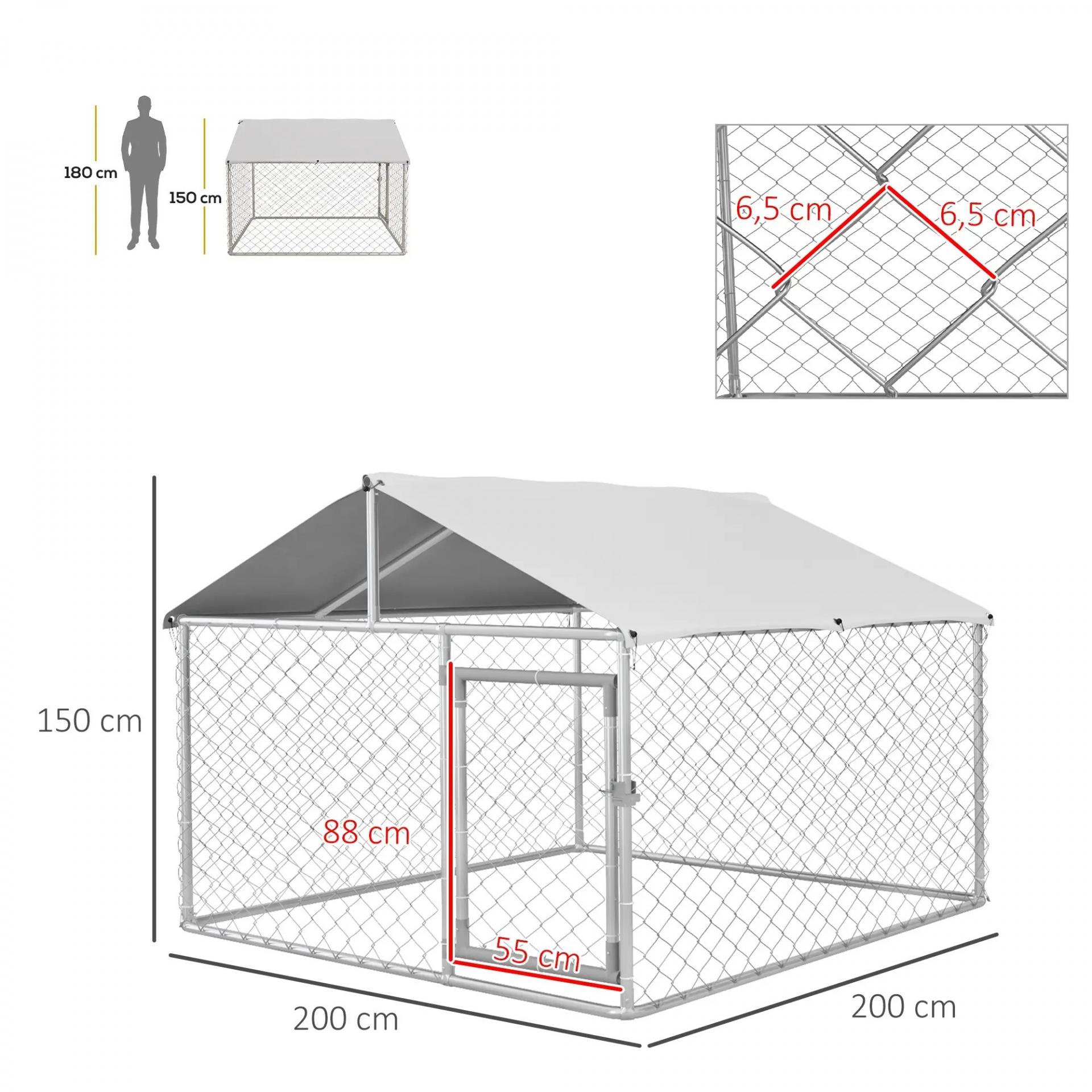 Jaula de Exterior para Perros Medianos con Cerradura Marco de Acero Toldo Impermeable y Anti-UV 200x200x150 cm Plata