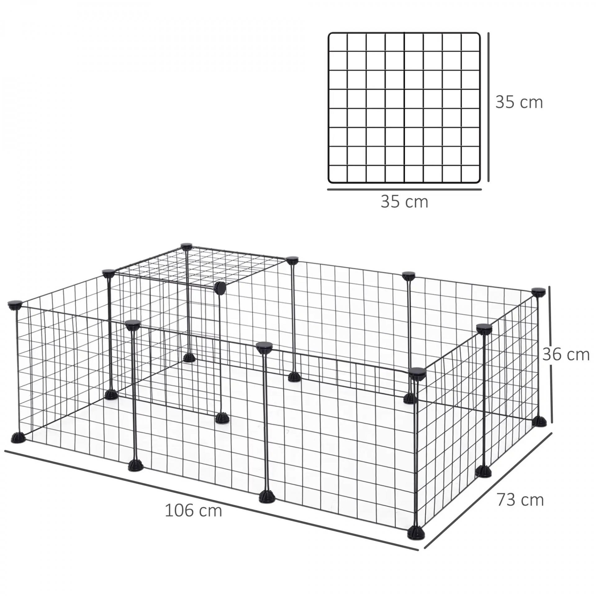 - ESTRUCTURA RESISTENTE: Hecho de 12 piezas de alambre de acero, este recinto para animales pequeños es duradero y práctico. Sus patas antideslizantes y bridas ofrecen estabilidad, y su ligereza lo hace fácil de transportar para vacaciones o visitas