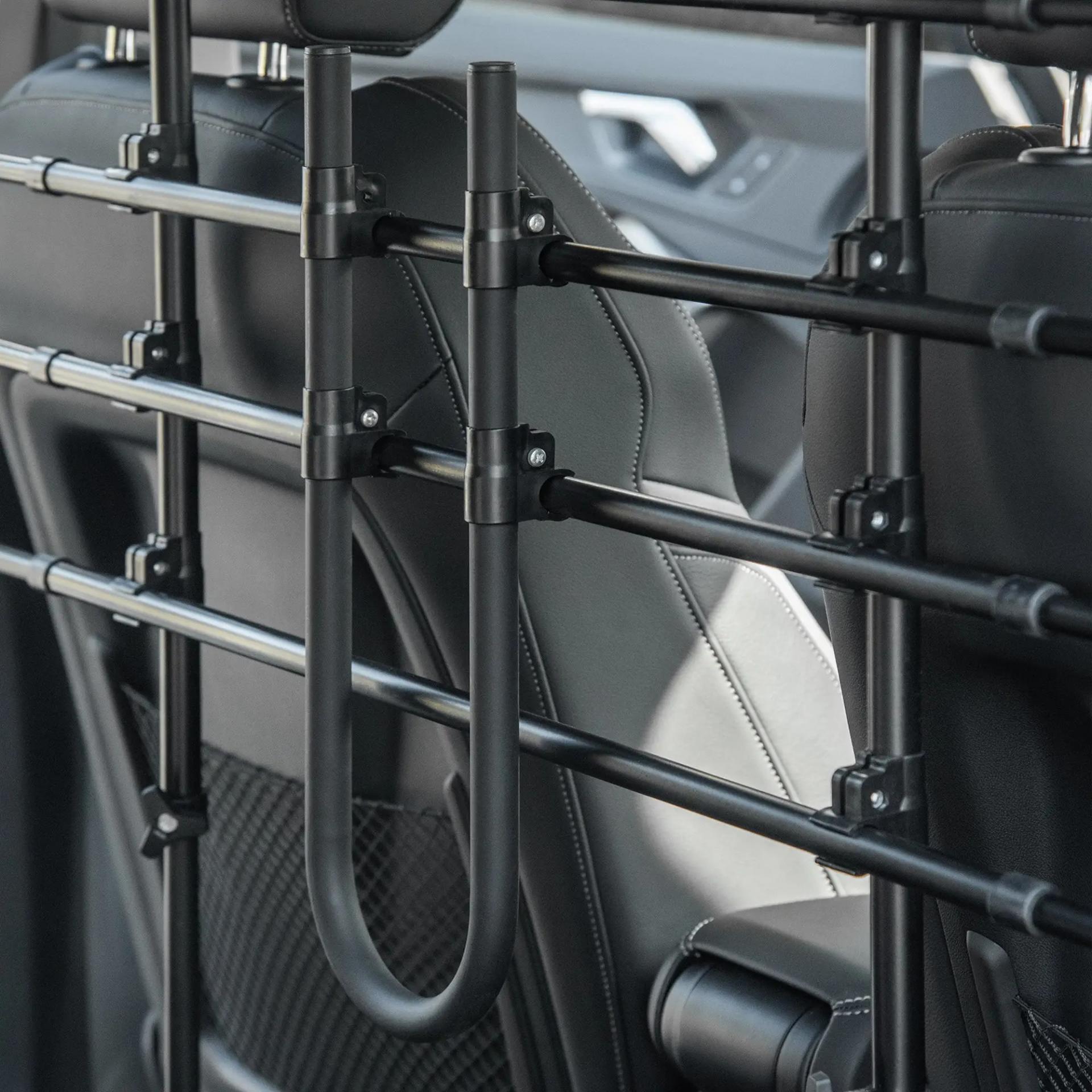 - ALTURA Y ANCHO AJUSTABLES: Esta rejilla separadora de coche para perros es ajustable para adaptarse a múltiples modelos de automóvil. Se puede ajustar tanto en ancho (87 a 135 cm) como en altura (85 a 120 cm)