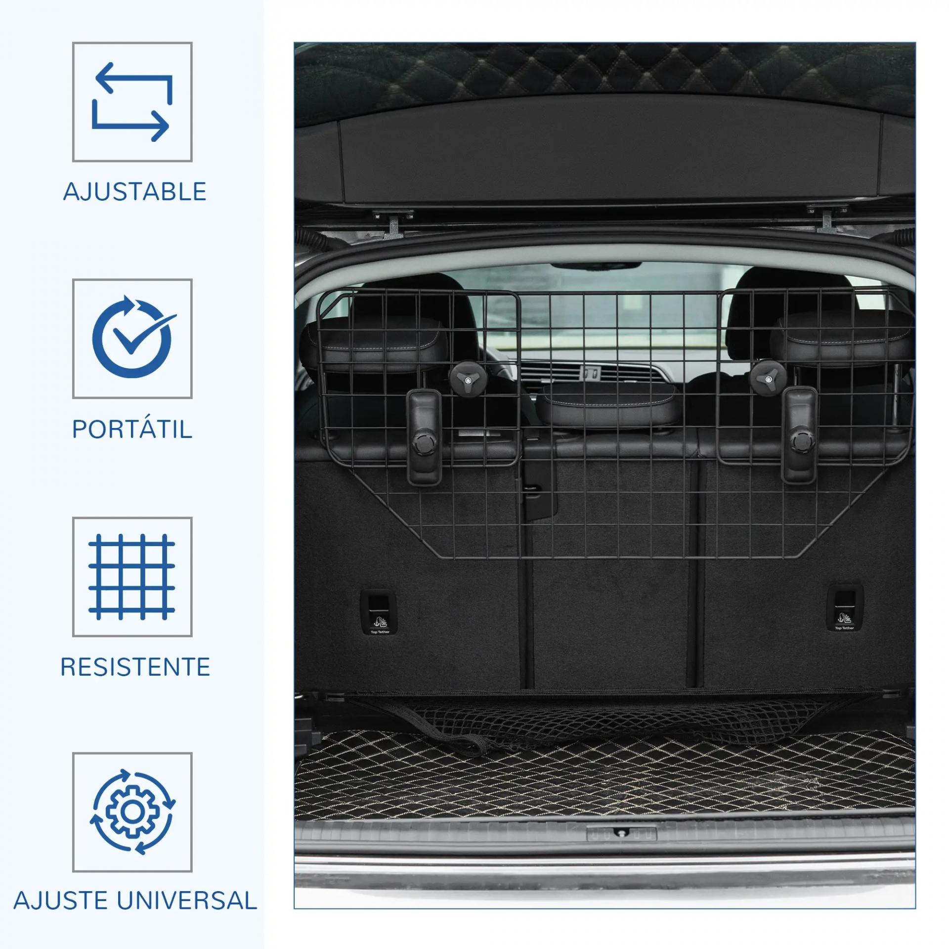 - ANCHO AJUSTABLE: Esta reja de protección universal es ajustable para adaptarse a varios modelos de automóviles. Se puede ajustar en ancho entre 90 y 120 cm