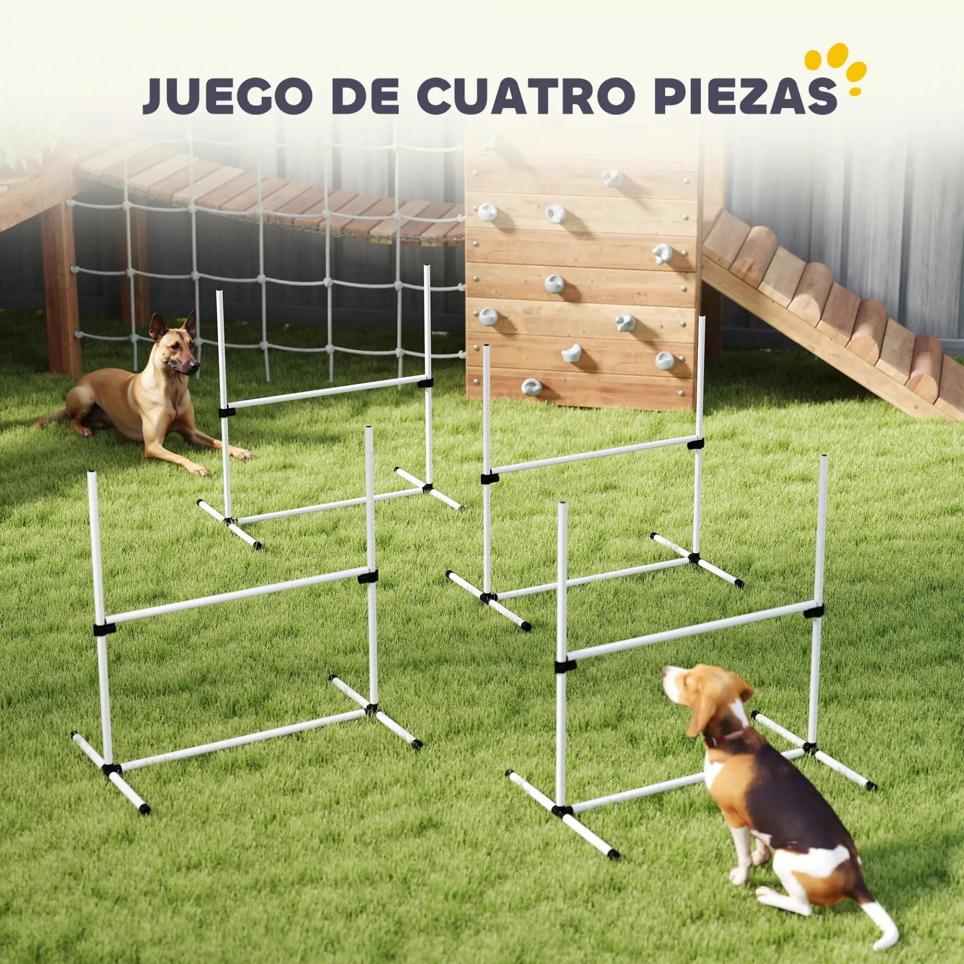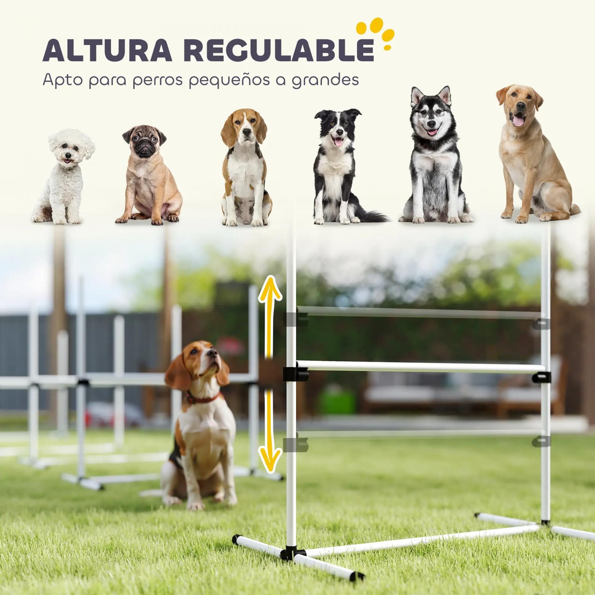 Set de Entrenamiento de Agilidad para Perros Mascotas 4 Piezas Obstáculos Vallas de Salto con Altura Ajustable y Bolsa de Transporte para Exteriores 99x65x94 cm Blanco