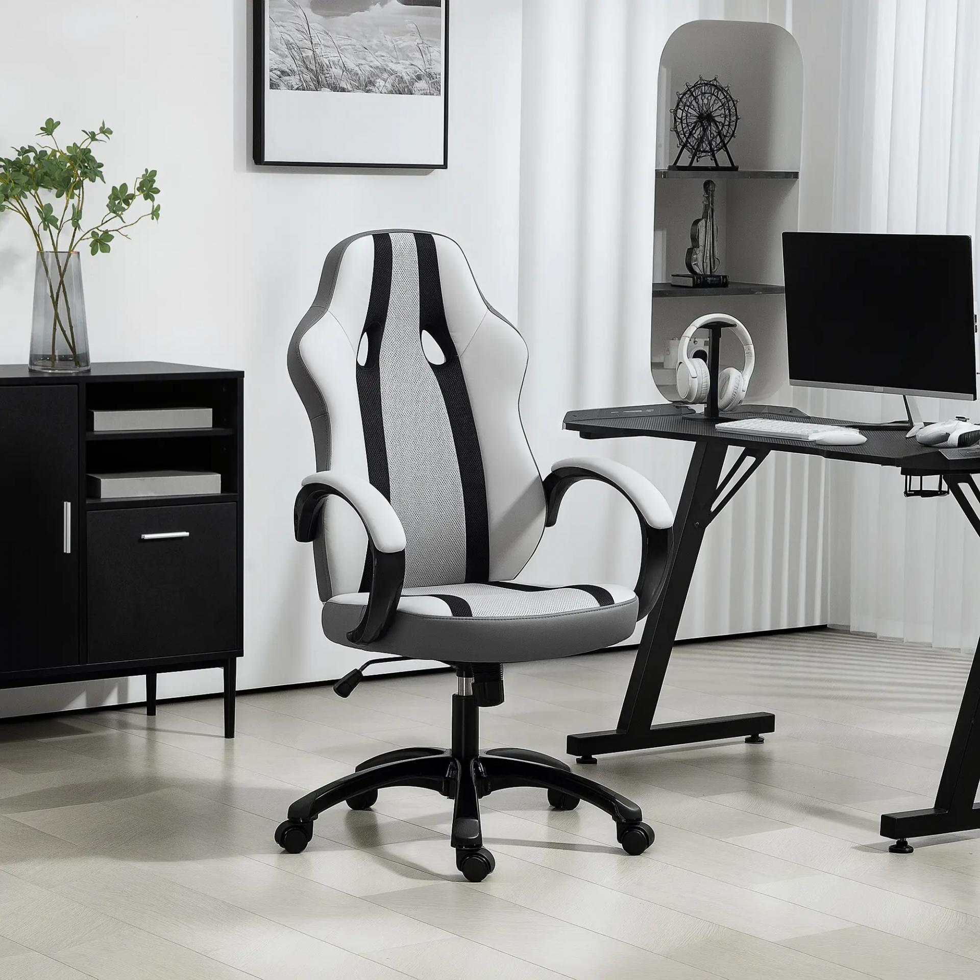 Silla Gaming Tapizada en PU y Malla Silla Gamer Giratoria con Función de Basculante Altura Ajustable Gris