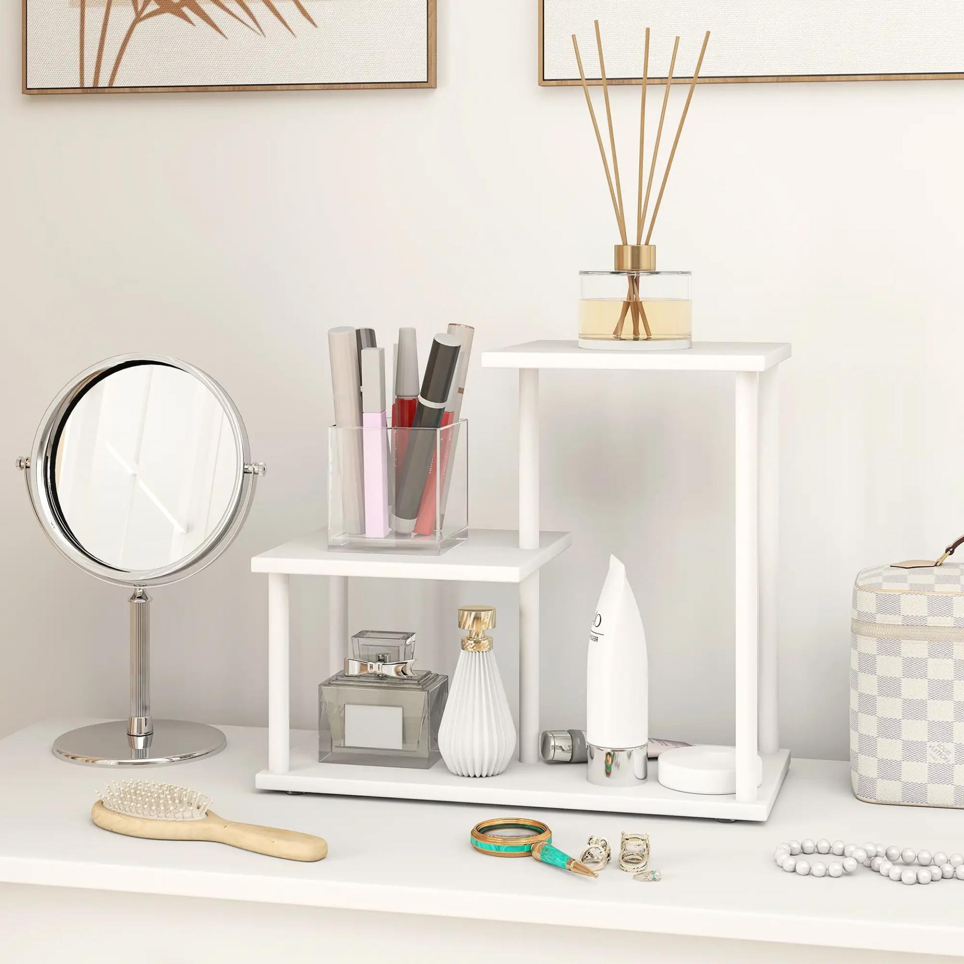 - ALMACENAMIENTO ESPACIOSO EN TRES NIVELES: Esta estantería incluye estantes de diferentes tamaños que ofrecen un almacenamiento versátil y práctico, ideal para mantener escritorios, mesas de oficina o tocadores ordenados