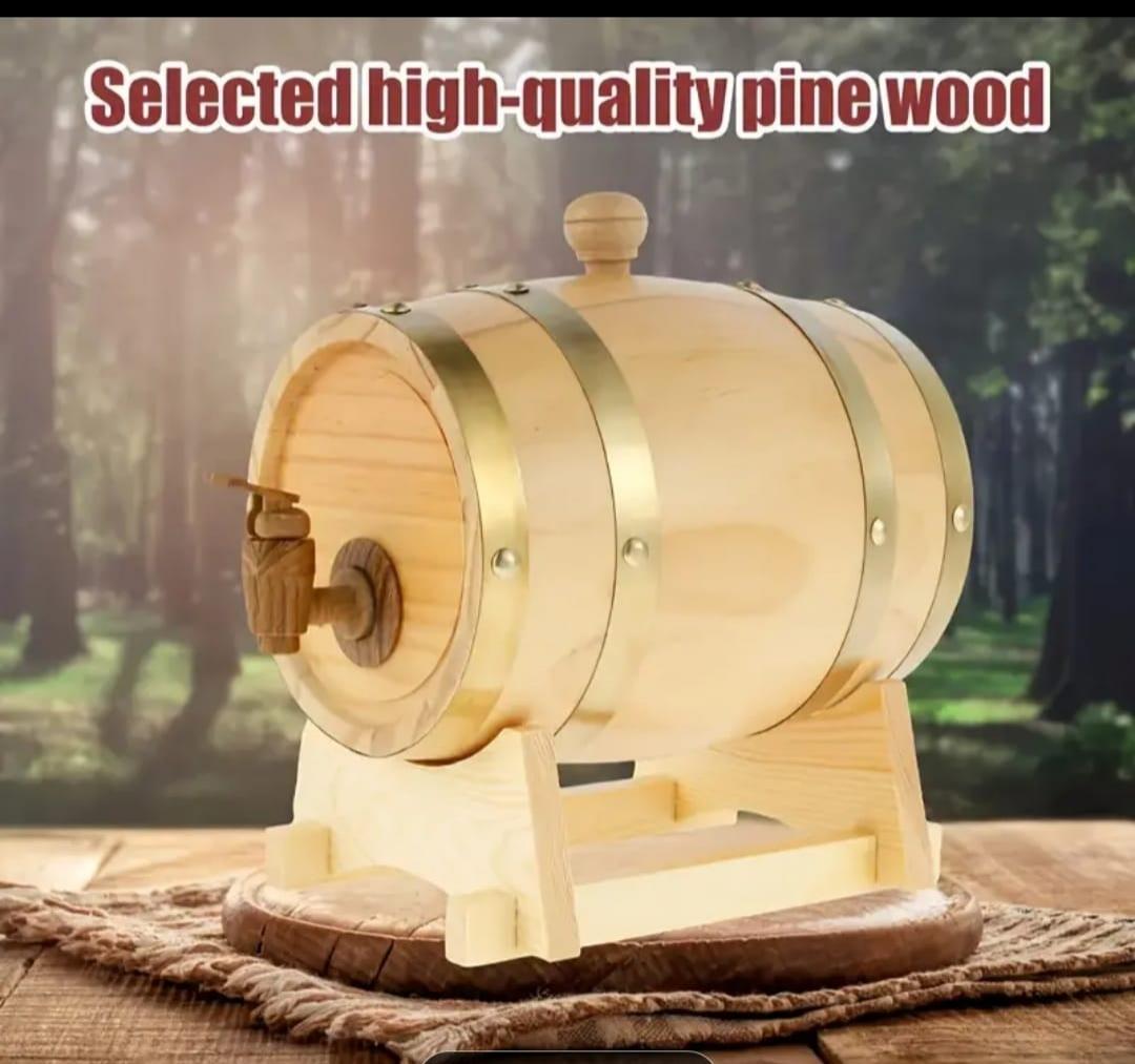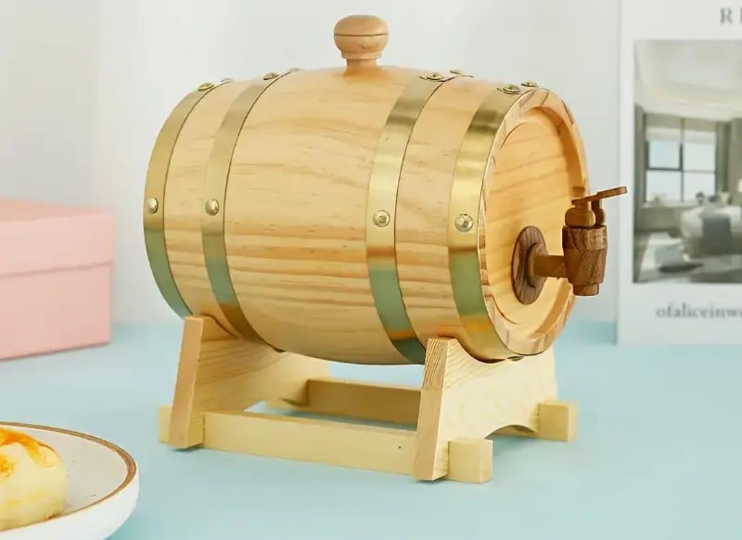 Barril de madera de pino de alta calidad con capacidad de 3 litros y grifo dispensador.