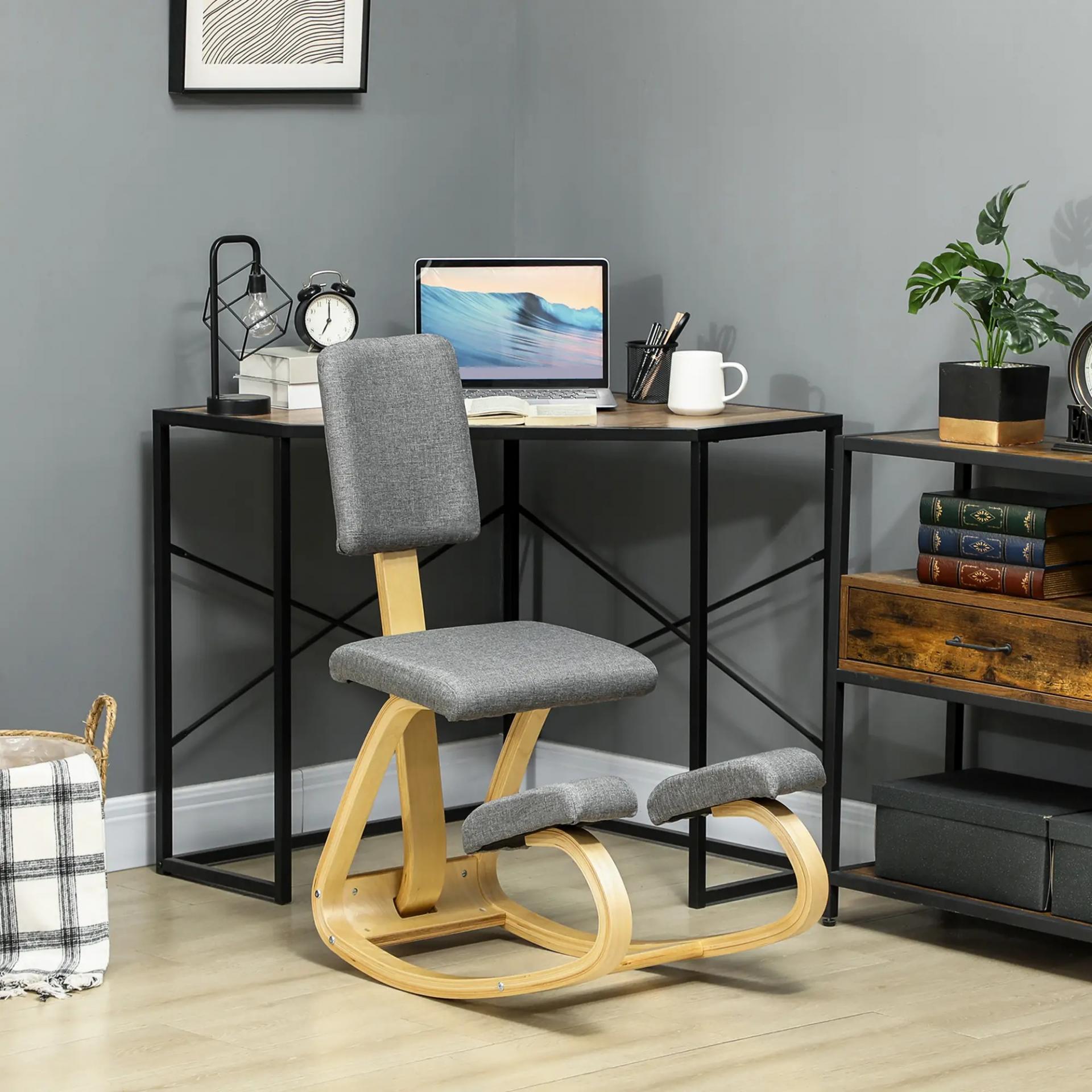 Silla Ergonómica de Rodillas con Respaldo Cojines Acolchados Marco de Madera para una Mejor Postura Oficina Gris