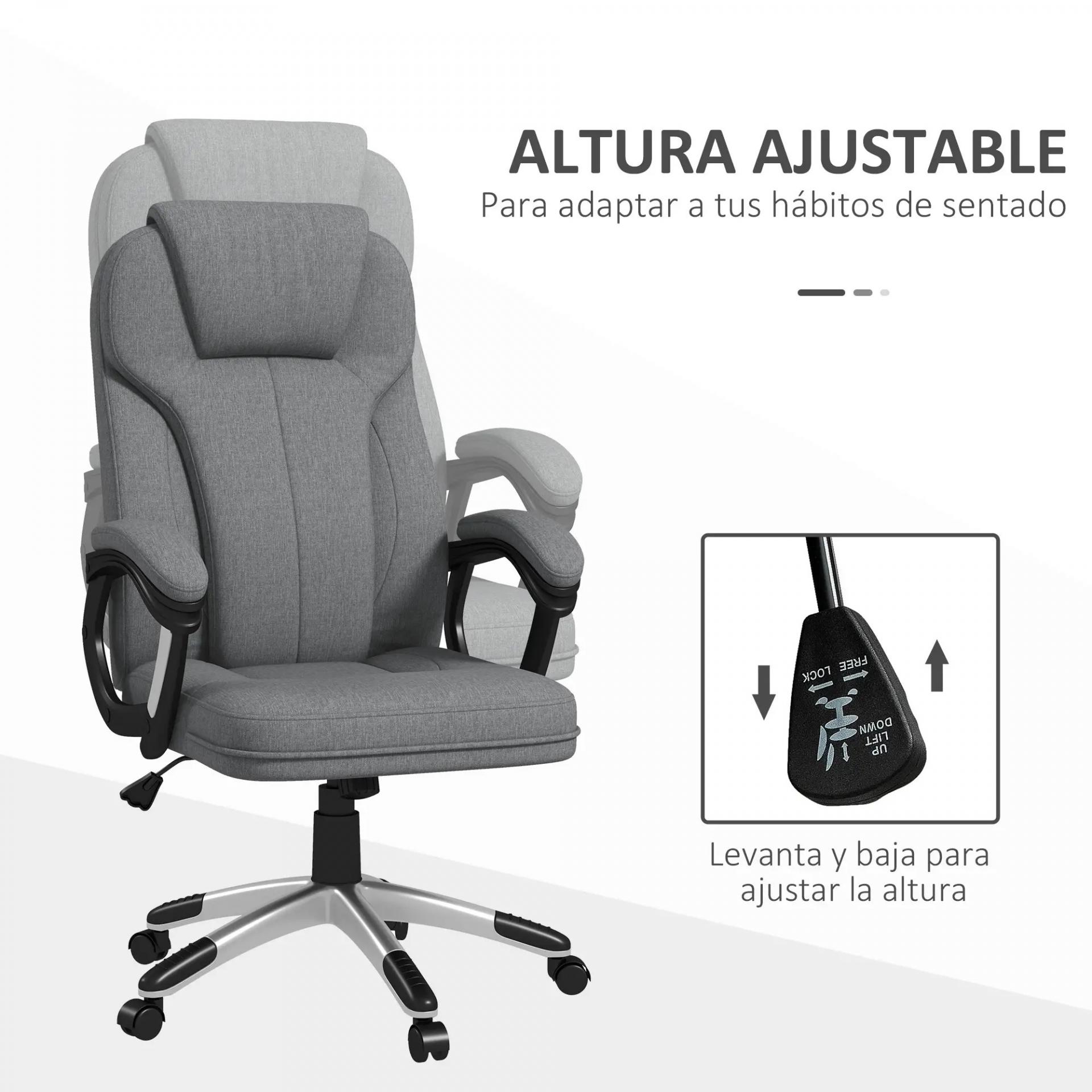 Silla de Escritorio Silla de Estudio Giratoria con Función Basculante Altura Ajustable Reposabrazos 66x75x110-120cm Gris