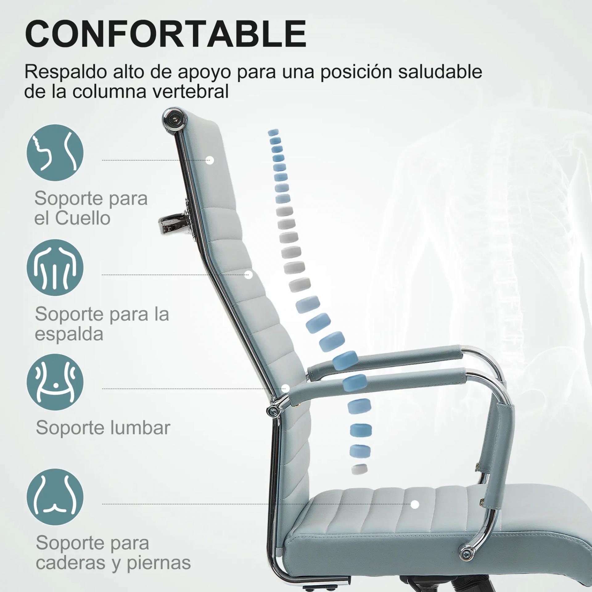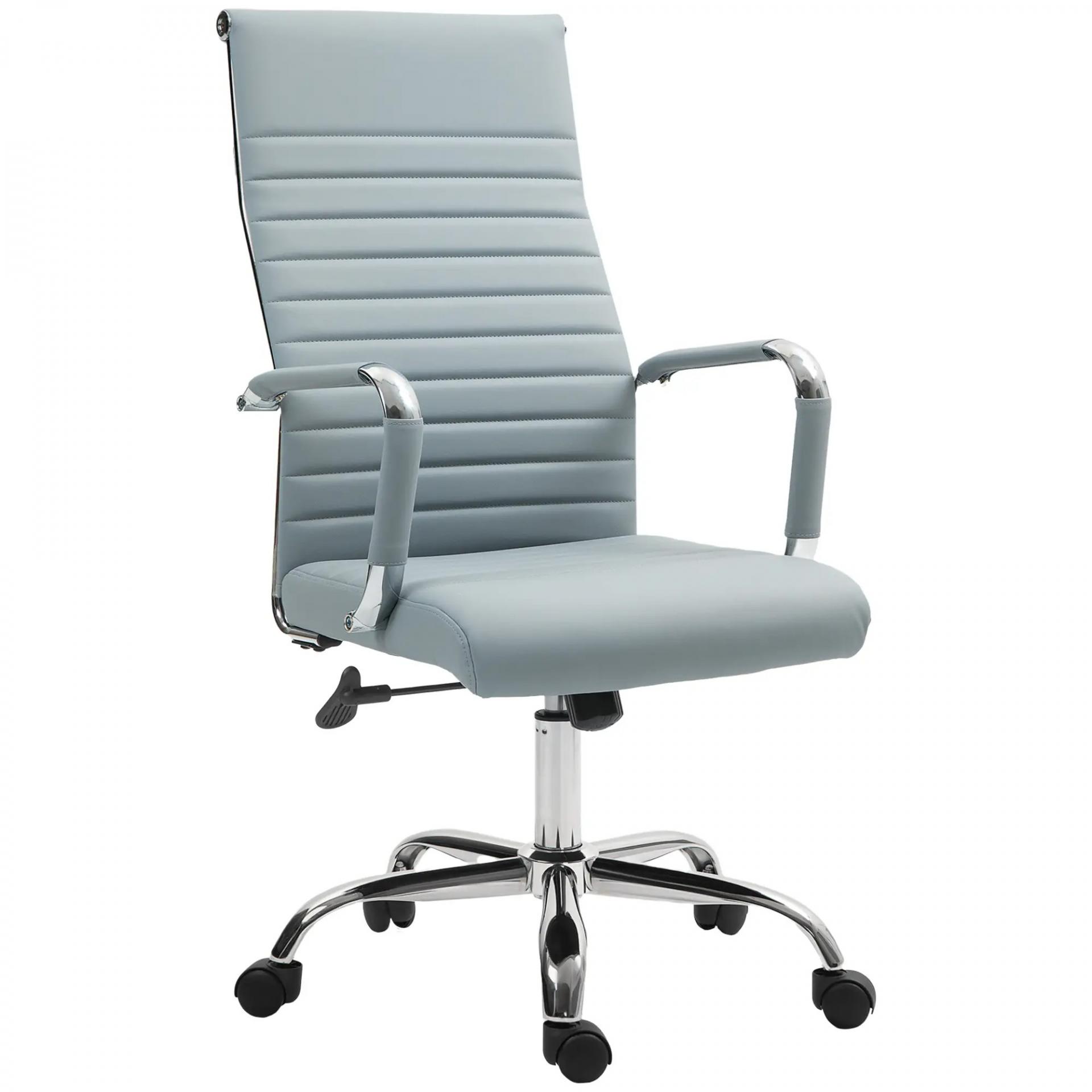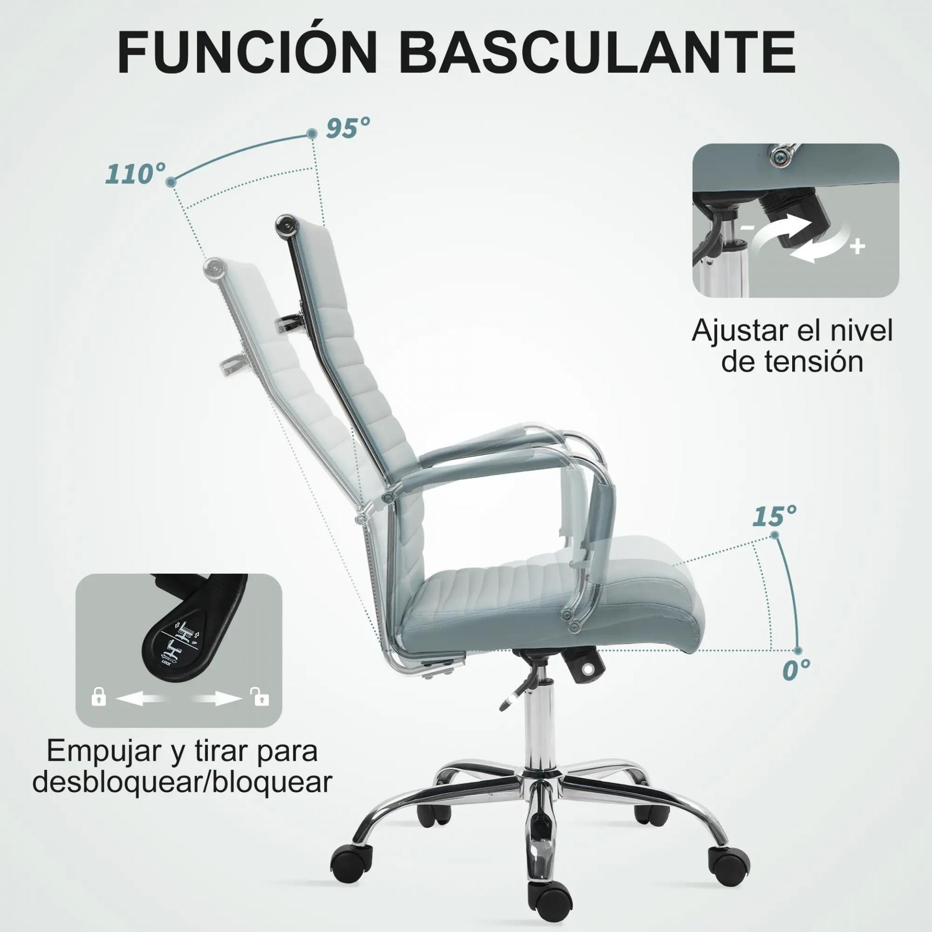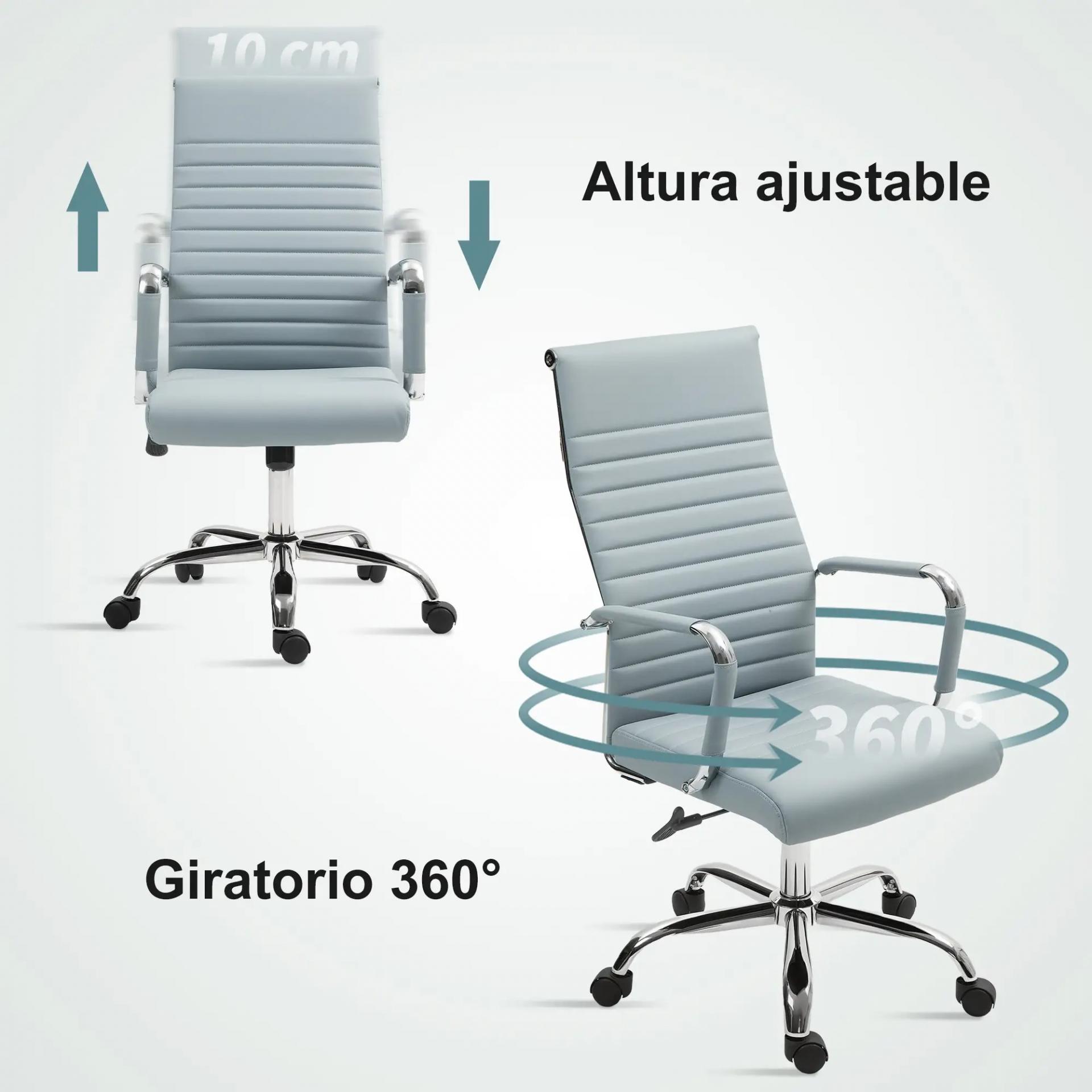 Silla de Escritorio Giratoria con Respaldo Alto Altura Ajustable Función Basculante y Reposabrazos Gris Claro