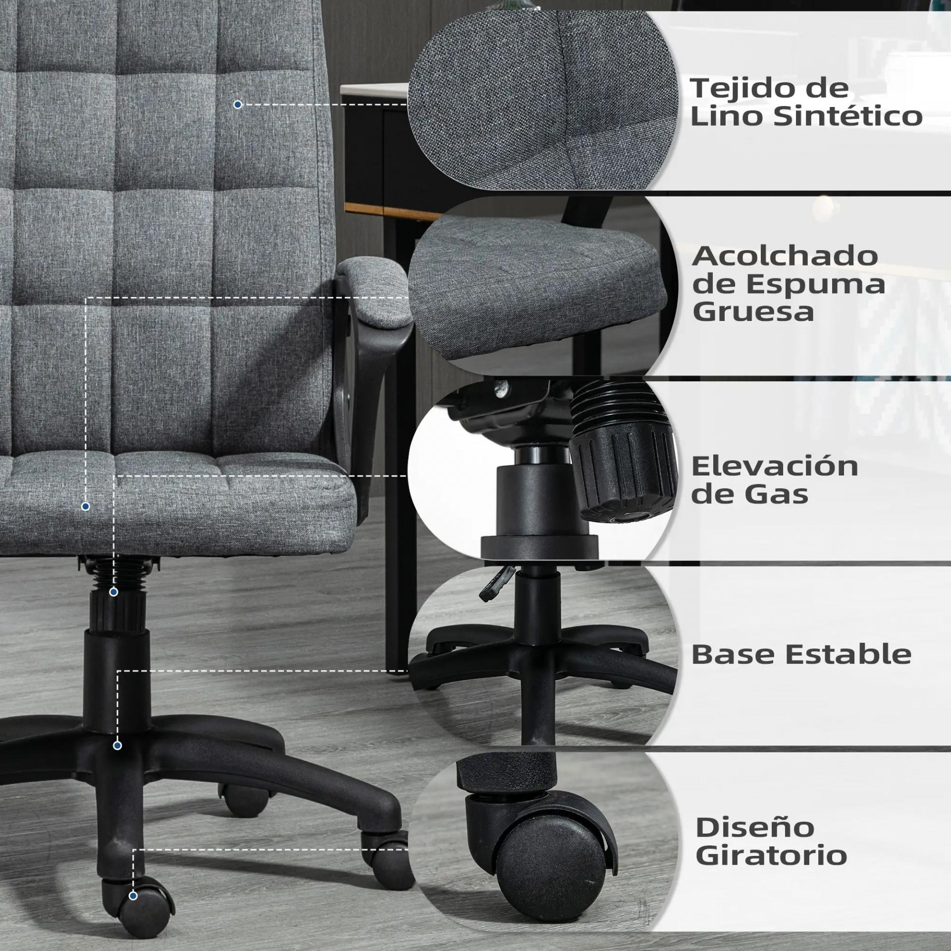 DISEÑO CÓMODO: El diseño curvo del respaldo y el asiento acolchado y tapizado en agradable tejido lino sintético transpirable, hacen de esta silla de oficina un asiento cómodo e ideal para pasar horas sentado