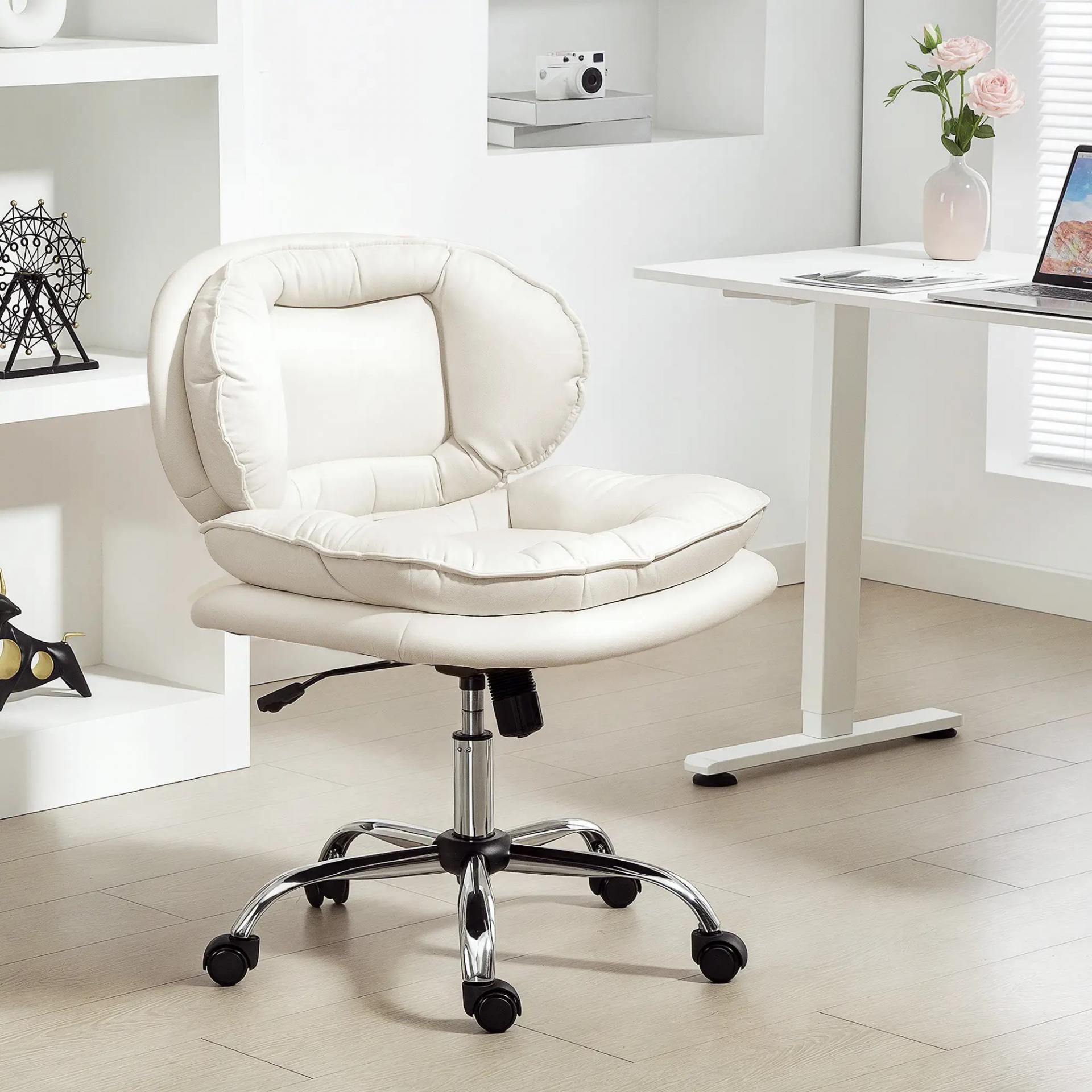 MÁXIMO CONFORT: Esta silla de oficina sin reposabrazos ofrece un asiento amplio de 62 cm, perfecto para sentarte con las piernas cruzadas. Su doble acolchado de algodón proporciona comodidad y buen soporte durante largas jornadas de trabajo