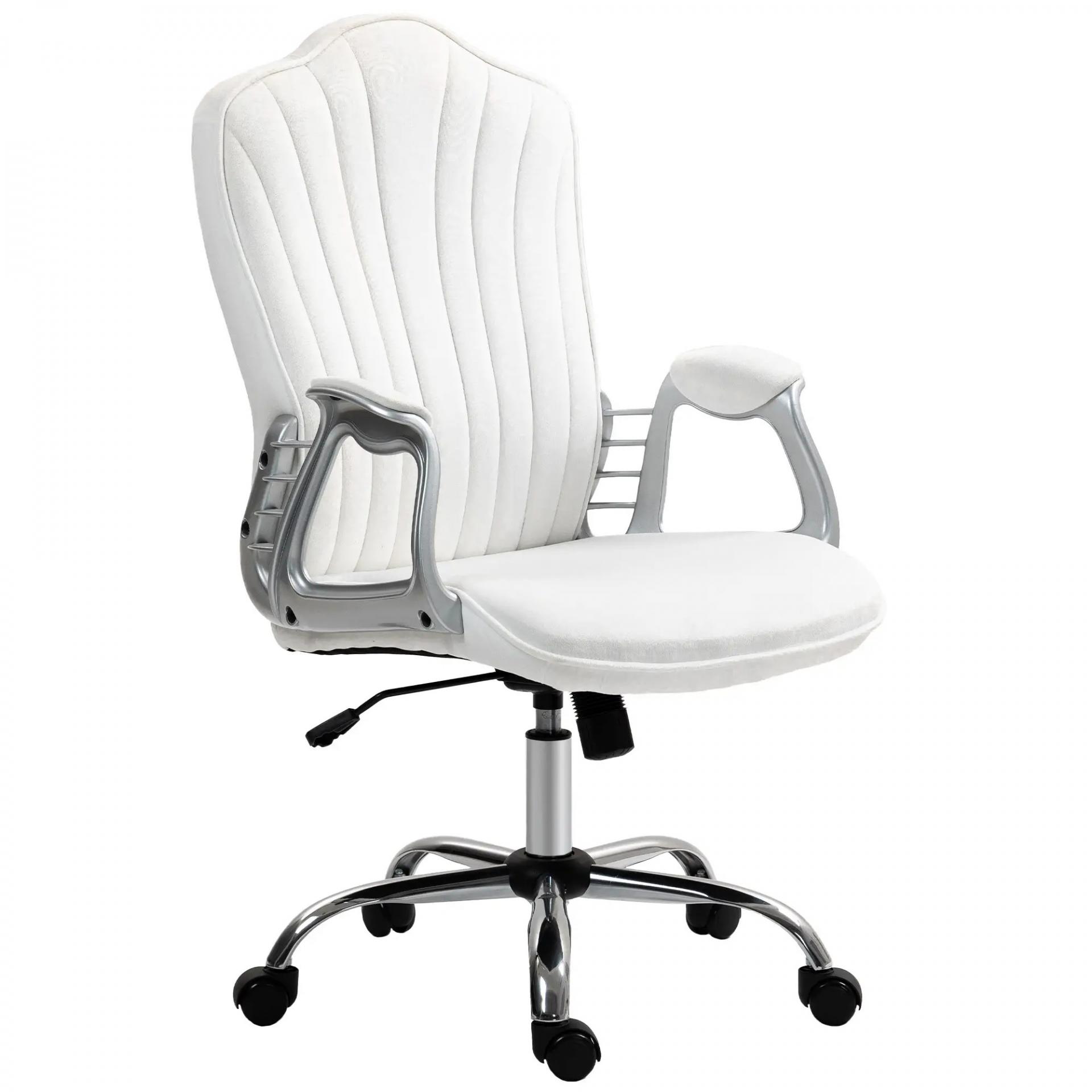 Silla de Escritorio Giratoria con Altura Ajustable Reposabrazos Respaldo Curvado Función de Basculante Blanco