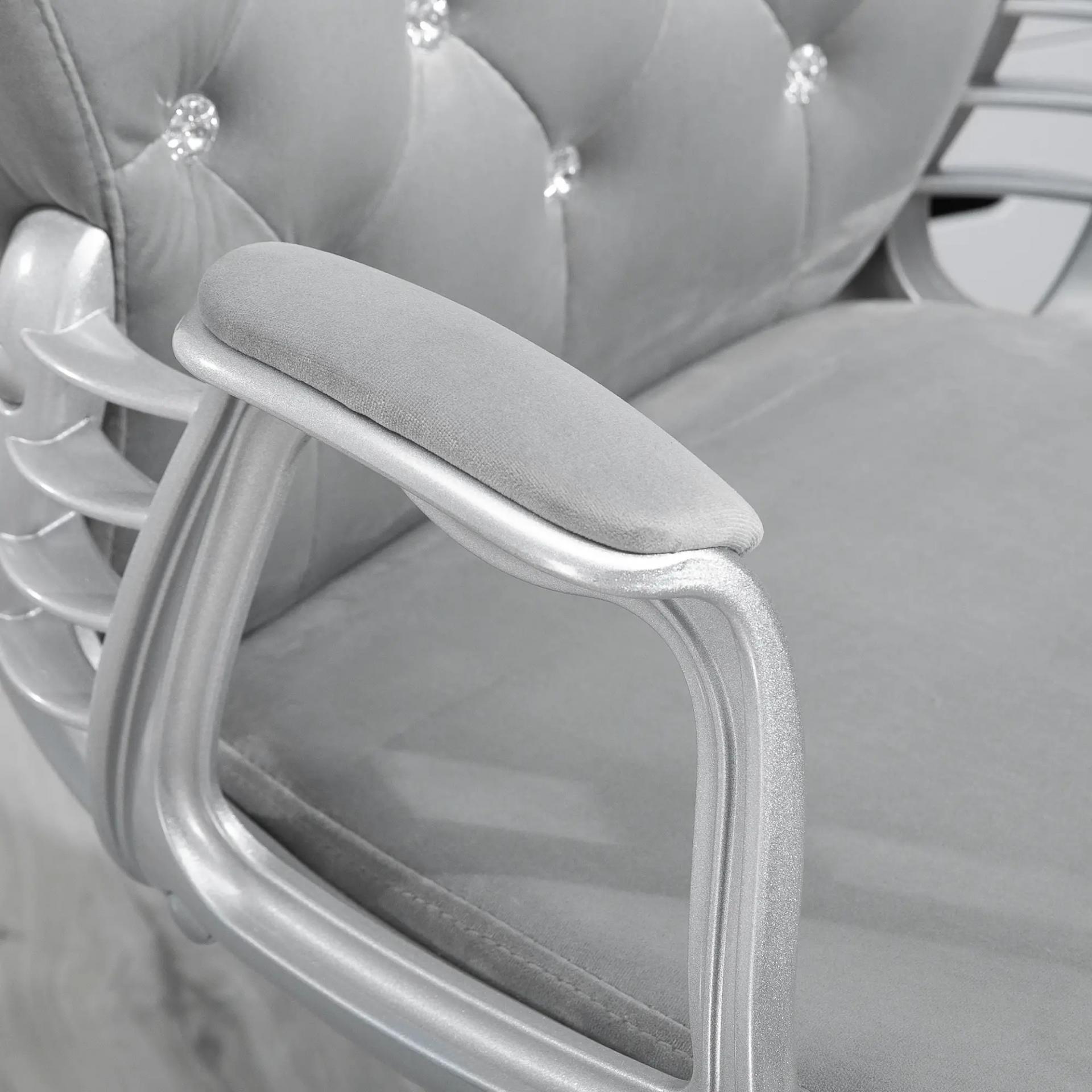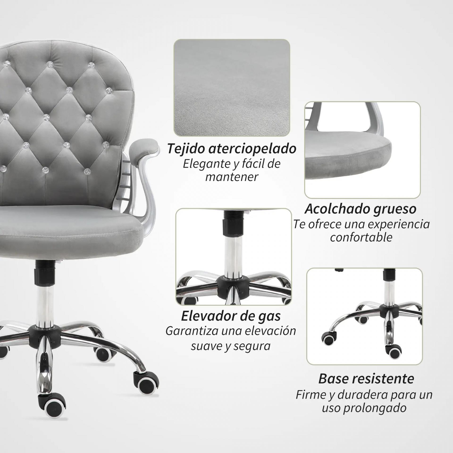 Silla de Escritorio de Terciopelo con Altura Ajustable Reposabrazos y Decoraciones de Diamantes 59,5x60,5x93-103 cm Gris