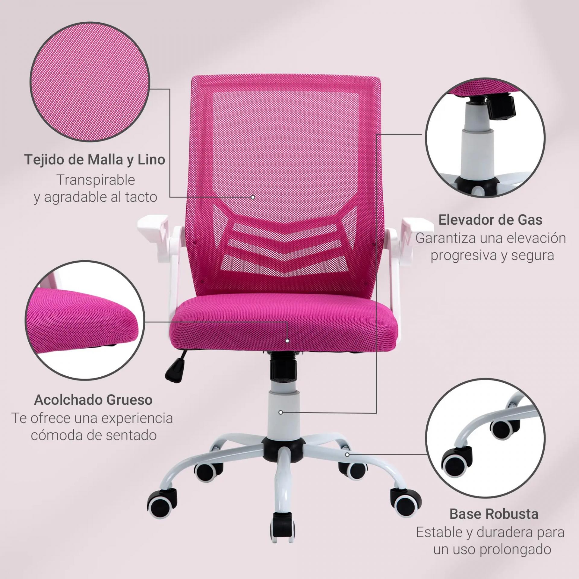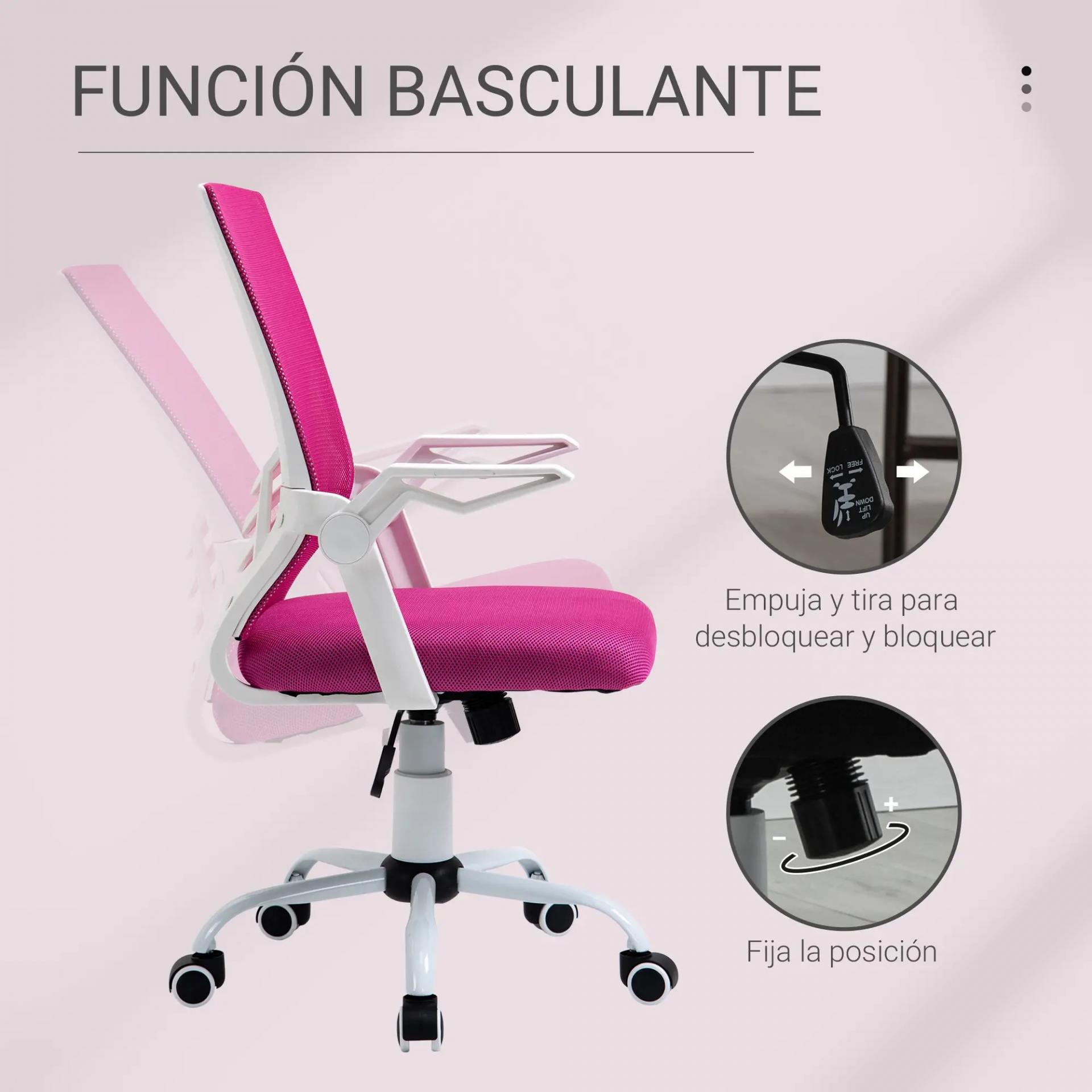 Silla de Oficina Ergonómica Silla Escritorio Giratoria con Altura Ajustable Reposabrazos Abatible Soporte Lumbar Transpirable para Adolescentes Adultos 62,5x55x94-104 cm Rosa